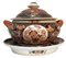 Zuppiera in porcellana cinese con piatto da portata, Primi 20° secolo H 25 cm, larghezza 35 cm Fondo nero decorazione in colore arancio