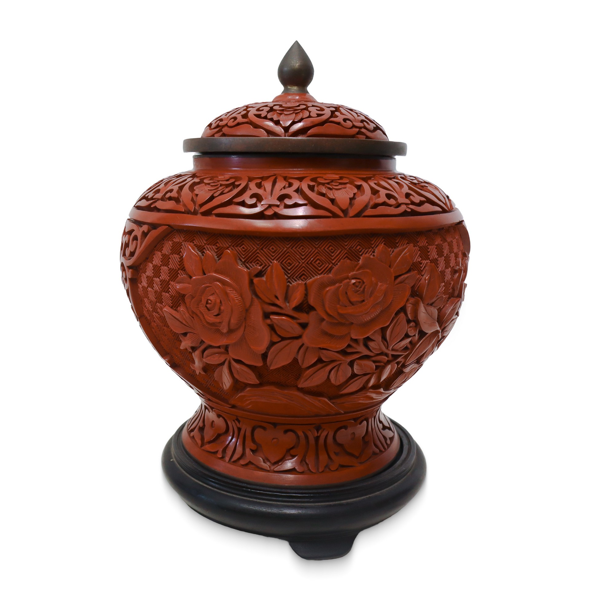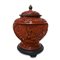 Vaso cinese porta zenzero intagliato in lacca rossa con coperchio
