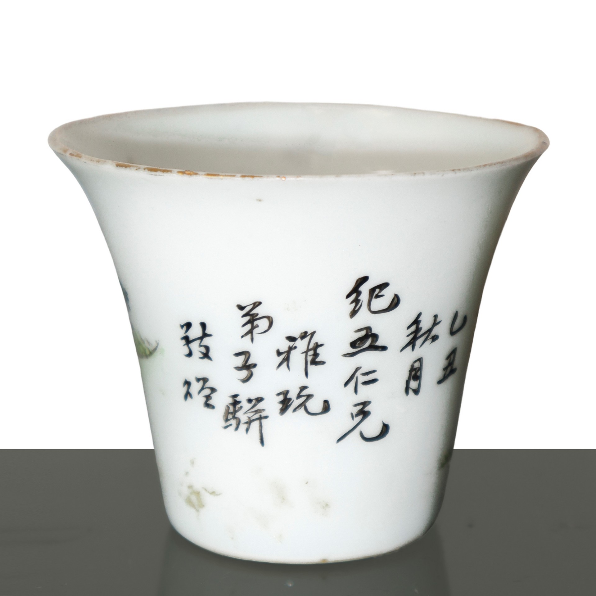 Coppia di vasetti e una ciotolina orientali in ceramica H cm 6x7.3 Due vasetti con raffigurazione di donna e uomo, una ciotolina con raffigurazione di donna. Due vasetti con raffigurazione di donna e uomo, una ciotolina con raffigurazione di donna.