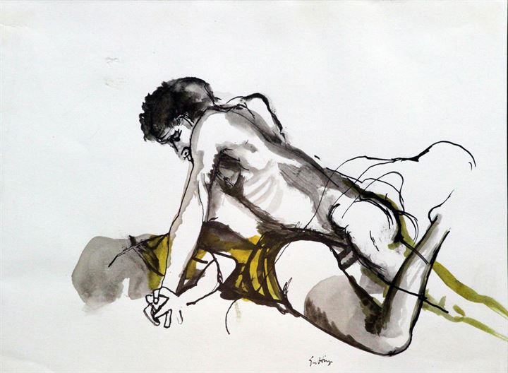 GUTTUSO RENATO Bagheria (PA) 1911 - 1987 Roma "Amanti" 25x35 china...
