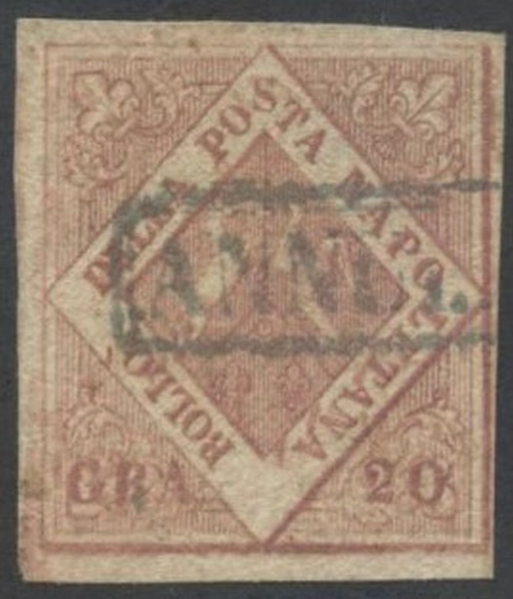 1858 - 20gr. Rosa Brunastro N.12, usato. (A+) (A.Diena)
