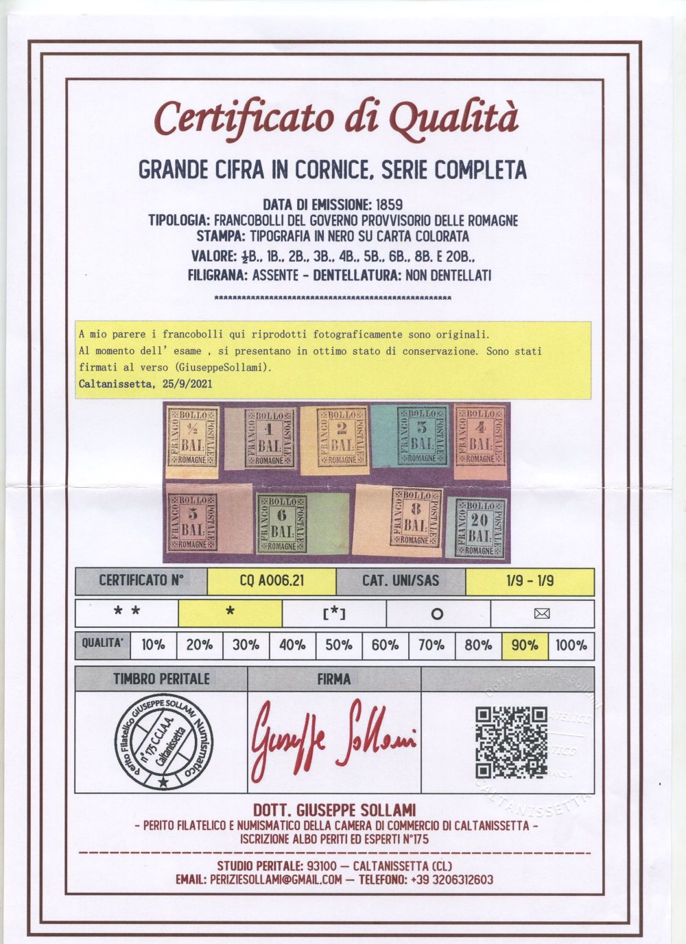 1859 - Serie completa n.1/9 nuova. N. 1 e 7 con gomma integra, gli altri linguellati. Tutti con angolo o bordo di foglio, qualità straordinaria. (LUX) (Bolaffi, Alberto Diena, Cert. Sollami)