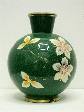 Lot 129 | Vaso a palla in ceramica decorato con fiori e bordature d'oro. Italia. Anni...