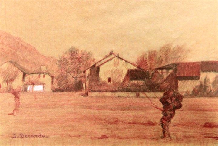 BERARDO IGNAZIO Torino 1888 - 1978 "Paesaggio di campagna" 20x30 pastelli su...