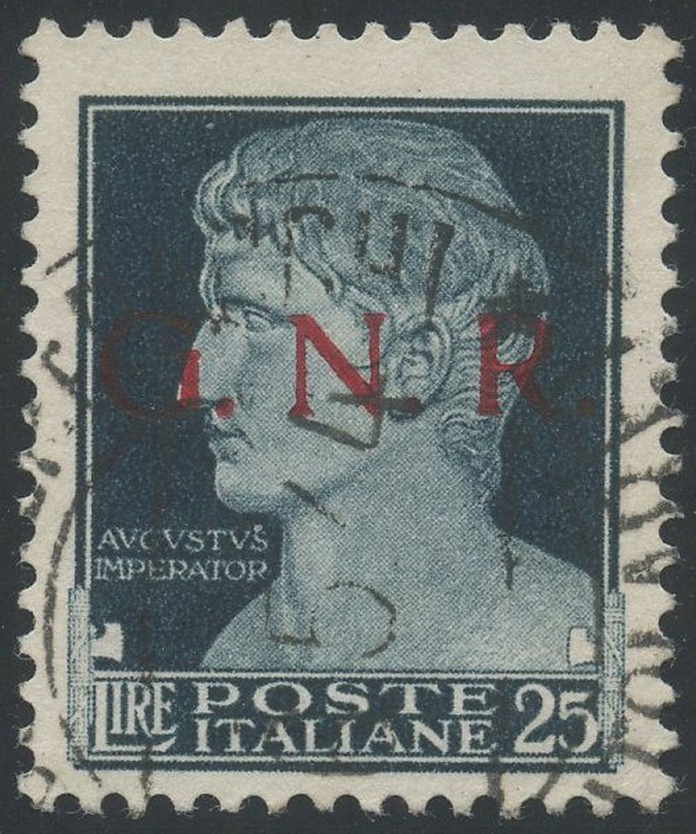 1944 - 25 Lire n.488 usato con l'annullo ''TITOLARE''. Firmato Chiavarello.