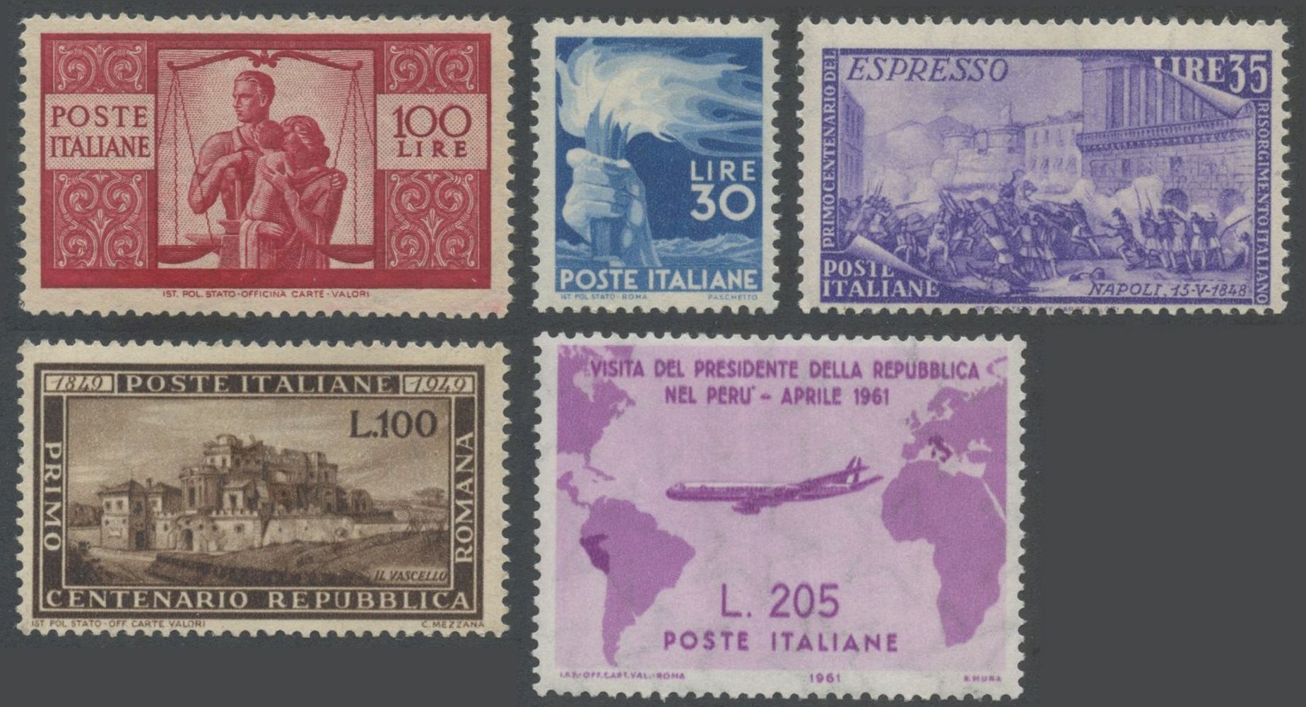31x32x4,5 Cm Collezione conservata su album e fogli Marini dal 1945 al 1969 con posta ordinaria completa (Compreso Gronchi Rosa Certificato) e alcune mancanze nei servizi. Qualità media molto buona.