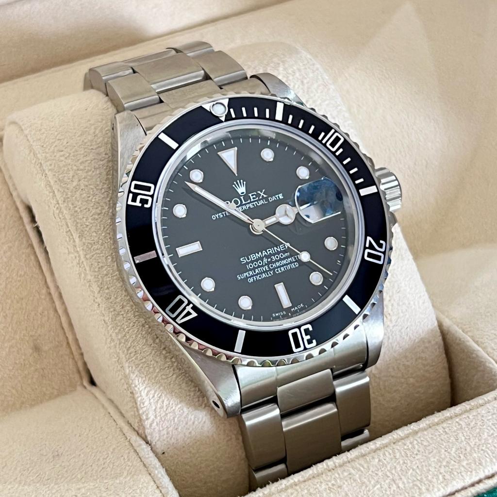 MARCA ROLEX MODELLO (OROLOGIO) SUBMARINER DATE NUMERO DI REFERENZA 16610 CARICA AUTOMATICO MATERIALE DELLA CASSA ACCIAIO MATERIALE CINTURINO ACCIAIO ANNO DI PRODUZIONE 2000/2003 CONDIZIONE OTTIMO (DI SECONDA MANO, SEGNI DI USURA ASSENTI O APPENA VISIBILI) CORREDO DOCUMENTI ORIGINALI ROLEX, NO BOX MATERIALE DELLA CASSA ACCIAIO DIAMETRO 40 MM IMPERMEABILE 30 ATM MATERIALE LUNETTA ACCIAIO VETRO ZAFFIRO QUADRANTE NERO NUMERI SUL QUADRANTE SENZA NUMERI CINTURINO MATERIALE CINTURINO ACCIAIO COLORE CINTURINO ACCIAIO CHIUSURA DÉPLOYANTE MATERIALE CHIUSURA ACCIAIO FUNZIONI DATA