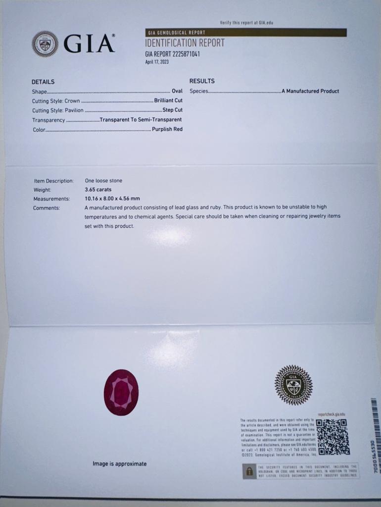 RUBINO NATURALE 3,65 CARATI COLORE TAGLIO OVALE - CERTIFICATO GIA - P30308-2