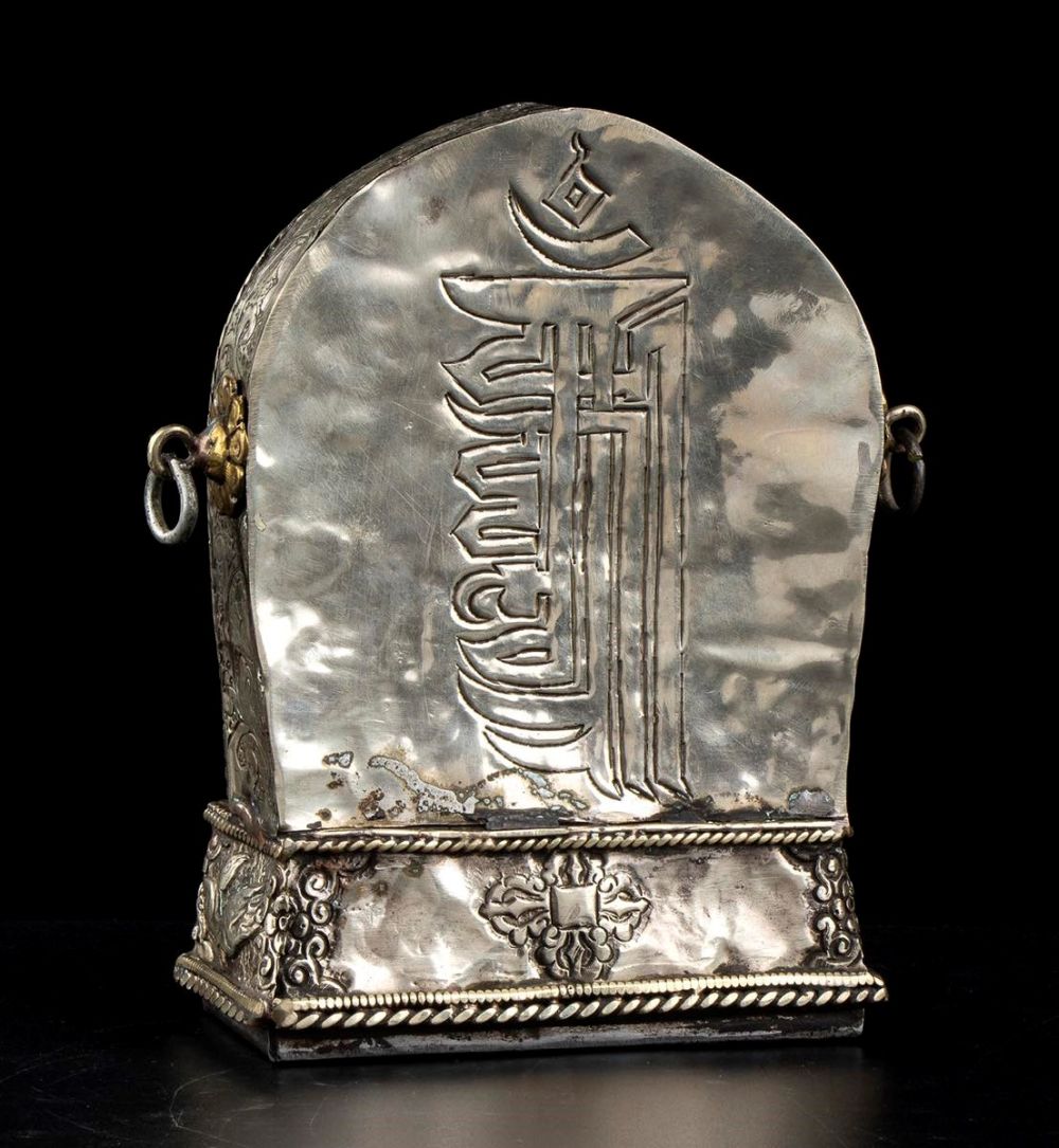 RELIQUIARIO GAU IN METALLO CON INSERTI IN PIETRA