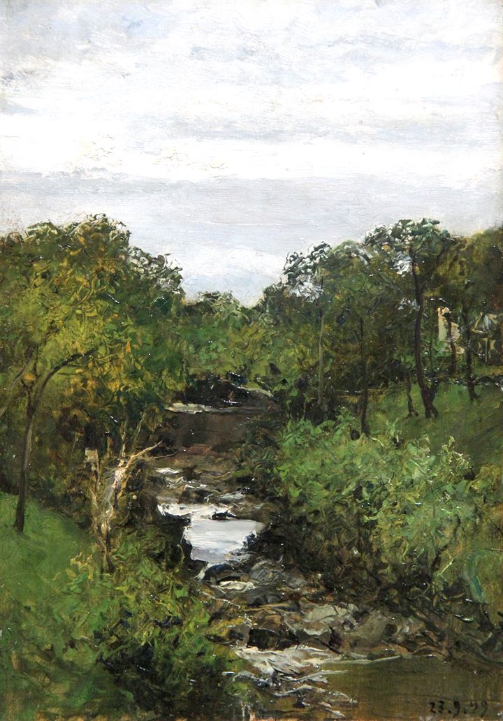 DELLEANI LORENZO Pollone (BI) 1840 - 1908 Torino "Torrentello tra il verde"...