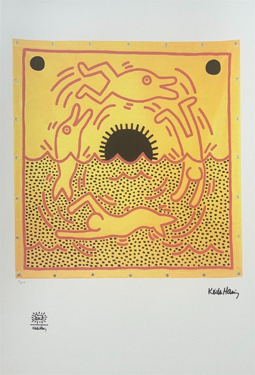 Timbro e timbro a secco della fondazione Keith Haring in basso a sinistra