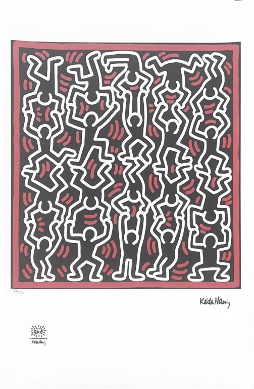 Timbro e timbro a secco della fondazione Keith Haring in basso a sinistra