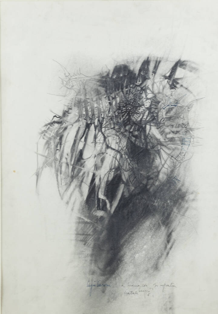 Opera firmata in basso al centro e dedicata in basso al centro in data "Natale 61"