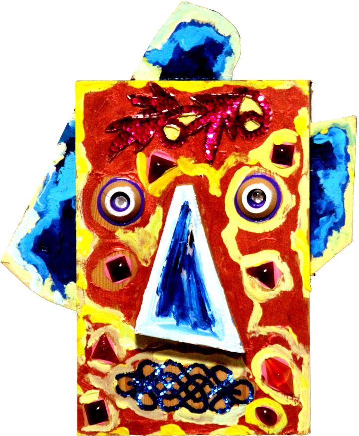 BAJ ENRICO Milano 1924 - 2003 Vergiate "Maschera brillante" 1995 34x31 legni,...