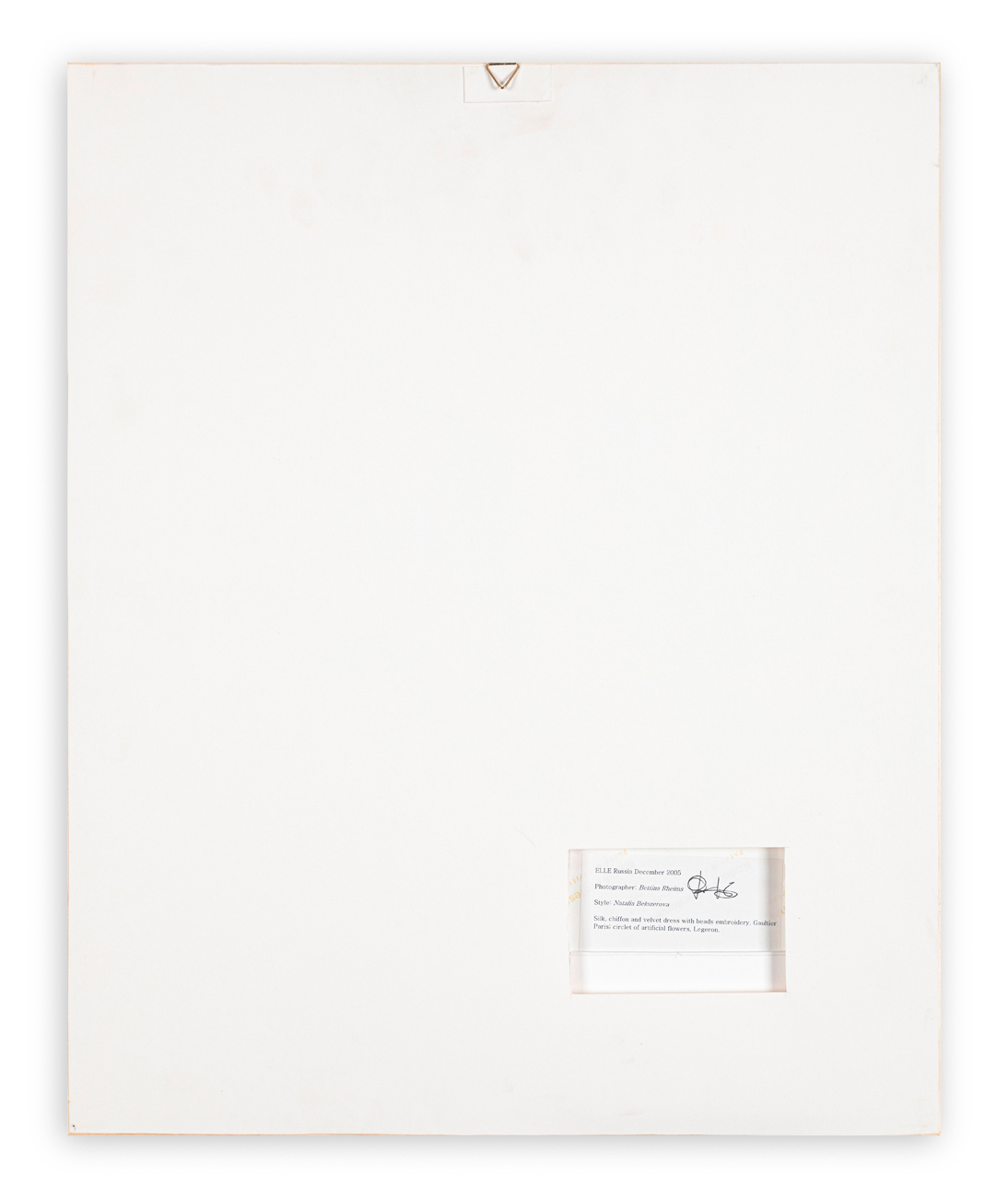 Etichetta con caratteristiche tecniche della posa e firma dell'Artista al retro