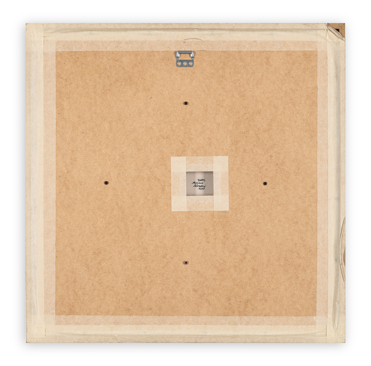 Firma, titolo e datazione al retro sulla tavola e sulla tela