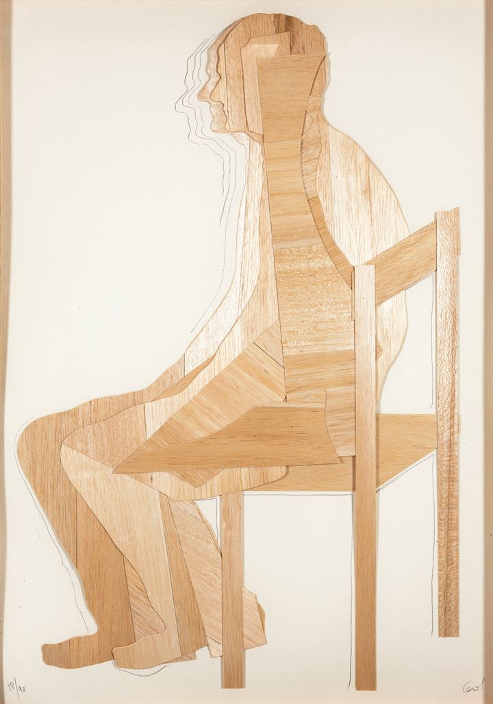 CEROLI MARIO Castelfrentano (CH) 1938 "Uomo seduto" 100x70 legno applicato su...
