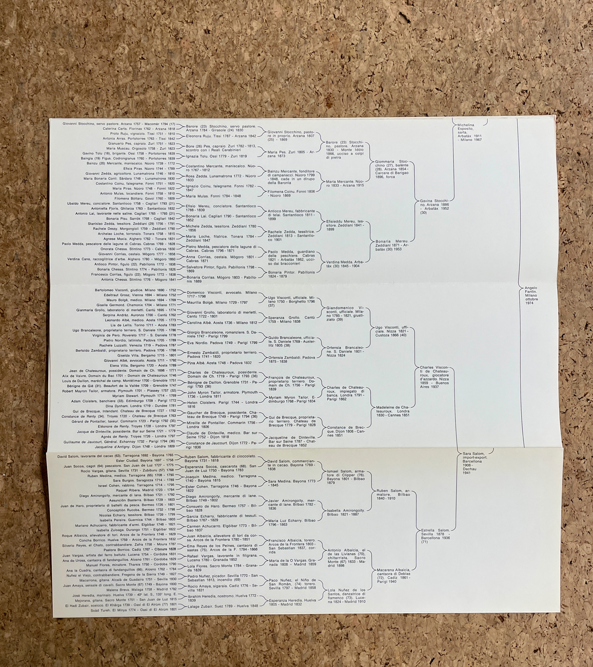 'Uno dei più straordinari libri italiani degli ultimi anni'. Così si esprimeva Italo Calvino, nel 1975, in un articolo sul Corriere della Sera in cui parlava di questo libro. 'Questo è un vecchio libro che parla di persone. È un "leporello" che si srotola, su cui sono riportati in parentesi graffe, andando indietro nel tempo, i nomi degli antenati di un certo Angelo Fantin, nato a Milano nel 1974. Si crea così una catena, che risale dai genitori ai nonni ai bisnonni e così via per trecento anni, che diventa sempre più vasta man mano che si va indietro. E ognuno, nato magari nei luoghi più lontani, fa nascere storie e destini, combinandosi inconsapevolmente con gli altri e con altri ancora non scritti. Ognuno è vissuto ed è morto, e la sua memoria e il suo ruolo sono stati dimenticati da chi lo ha seguito e ignorati da chi lo precedeva'.