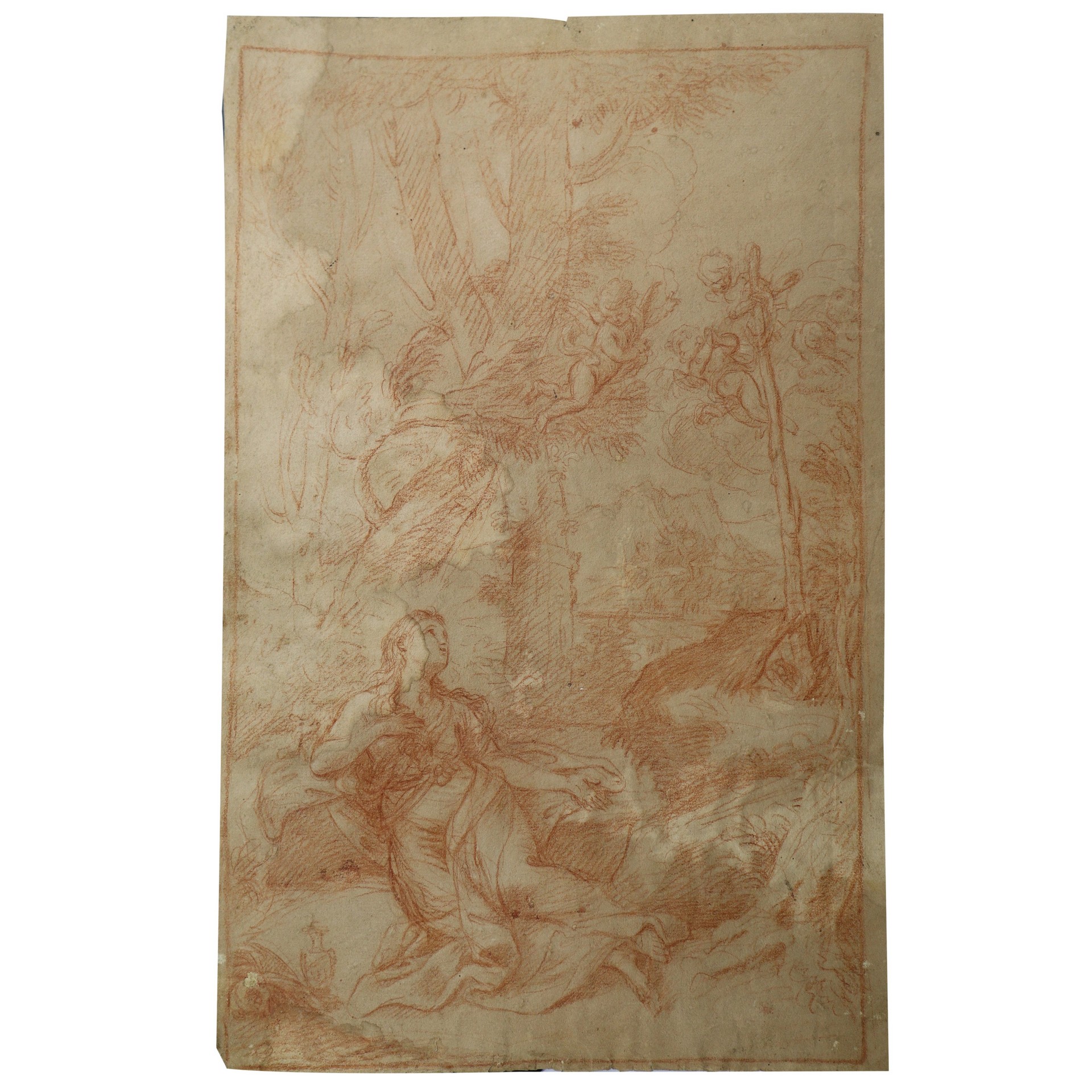 Filippo Frigiotti (Roma) - Maddalena penitente H mm 413x270 Sanguigna Perizia del Professore Claudio Strinati: «Rarissima e finissima opera di un notevole pittore romano i cui dati biografici sono però pochissimo conosciuti e di cui si conserva un nucleo di opere certe e molto significative che ne dimostrano l’eccellenza nell’ambiente artistico romano della prima metà del Settecento.