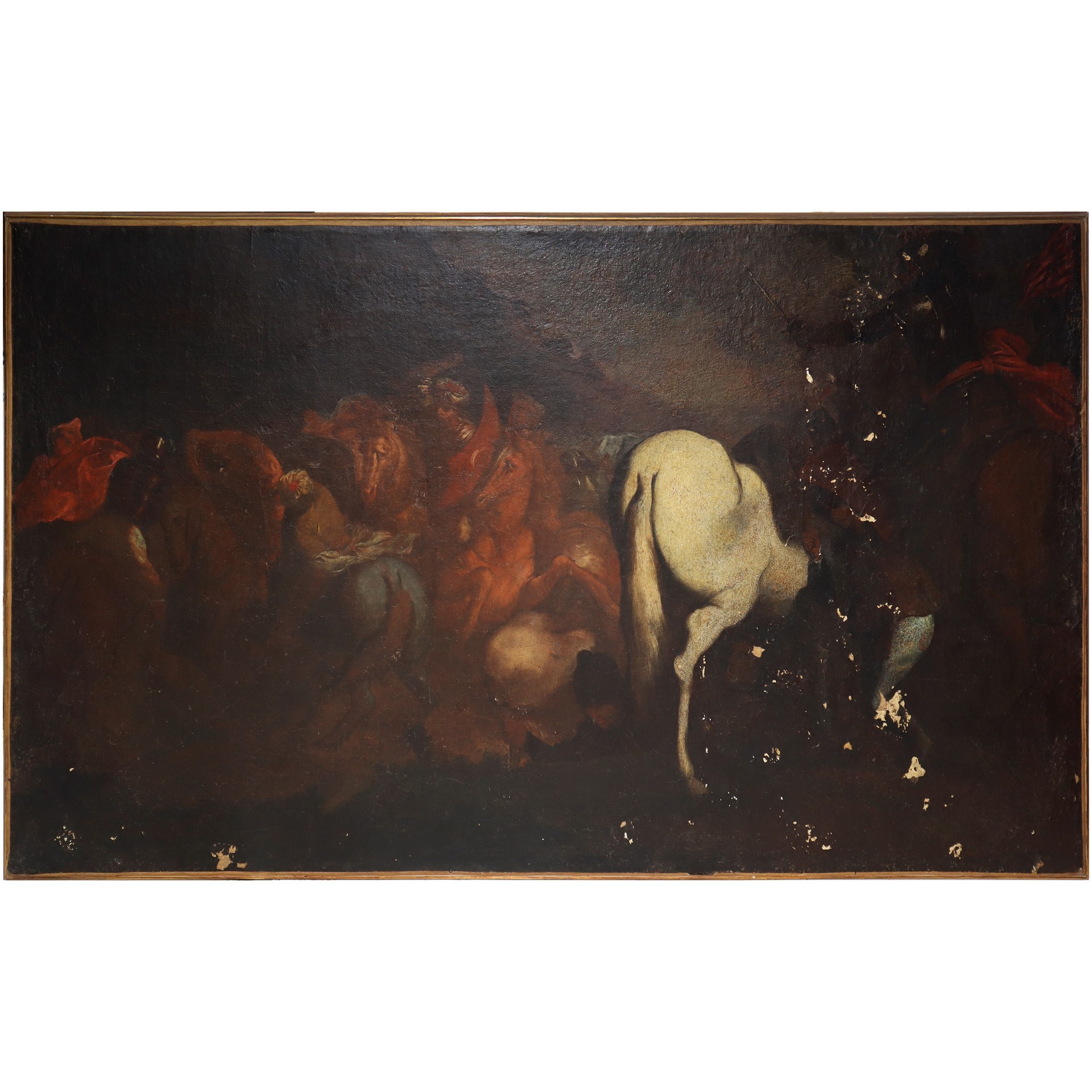 Scena di battaglia tra cavalieri, 18° secolo Cm 55x102 Cadute di colore.Cadute di colore.