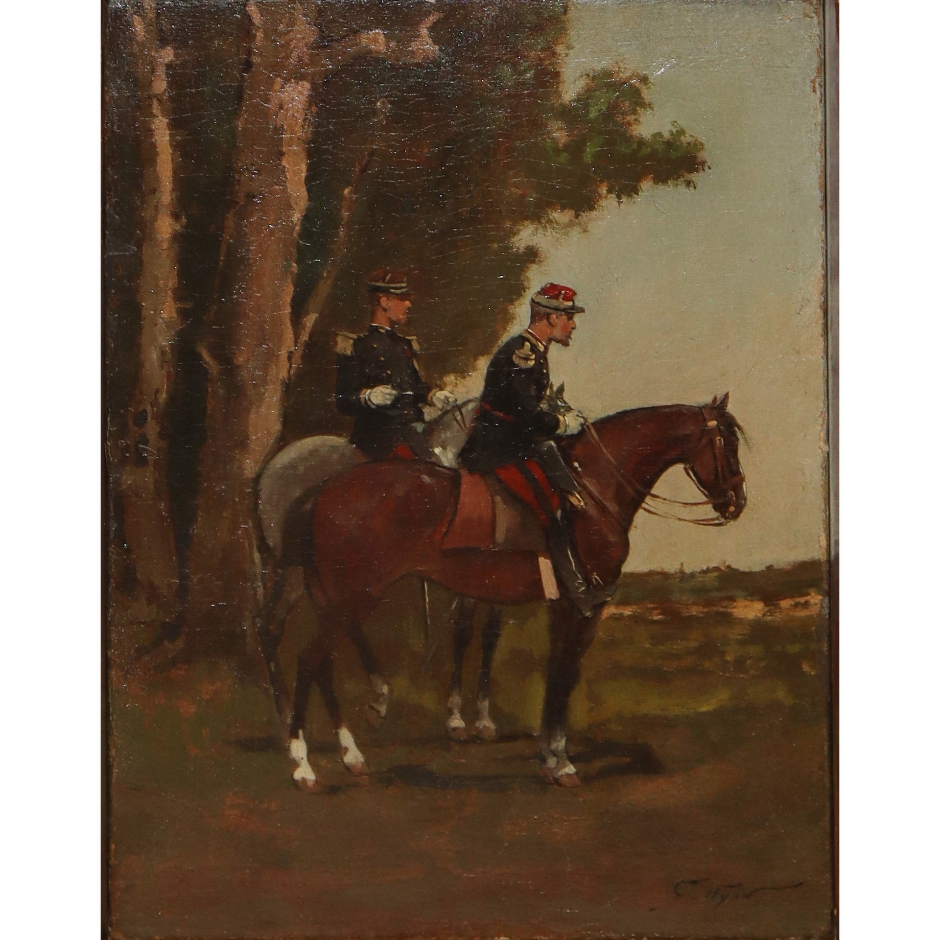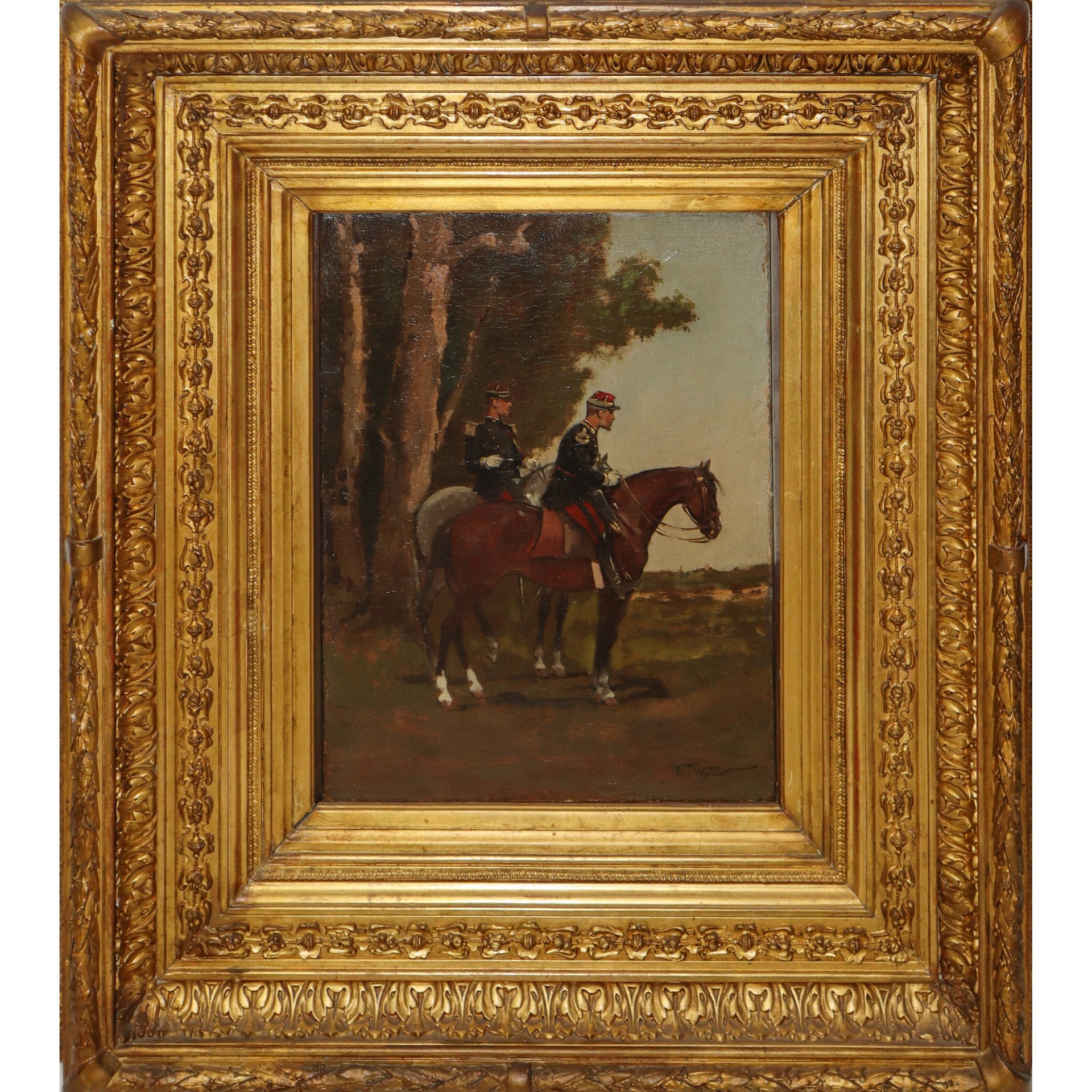 Georges Louis Hyon (Parigi 1840-1909) - Dipinto di soldati a cavallo di vedetta