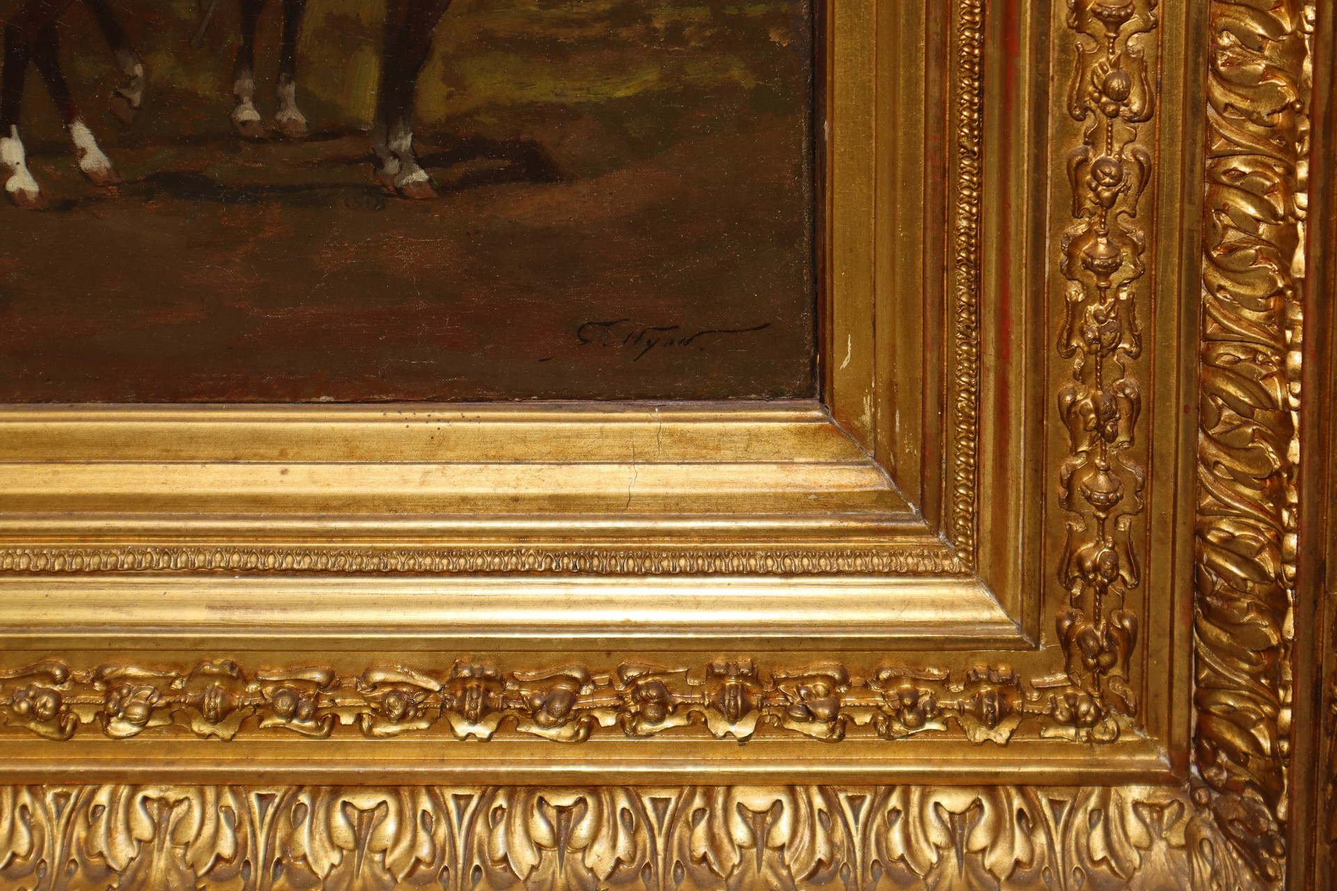 Georges Louis Hyon (Parigi 1840-1909) - Dipinto di soldati a cavallo di vedetta H cm 31x24 - in cornice H cm 57x51 Olio su tela