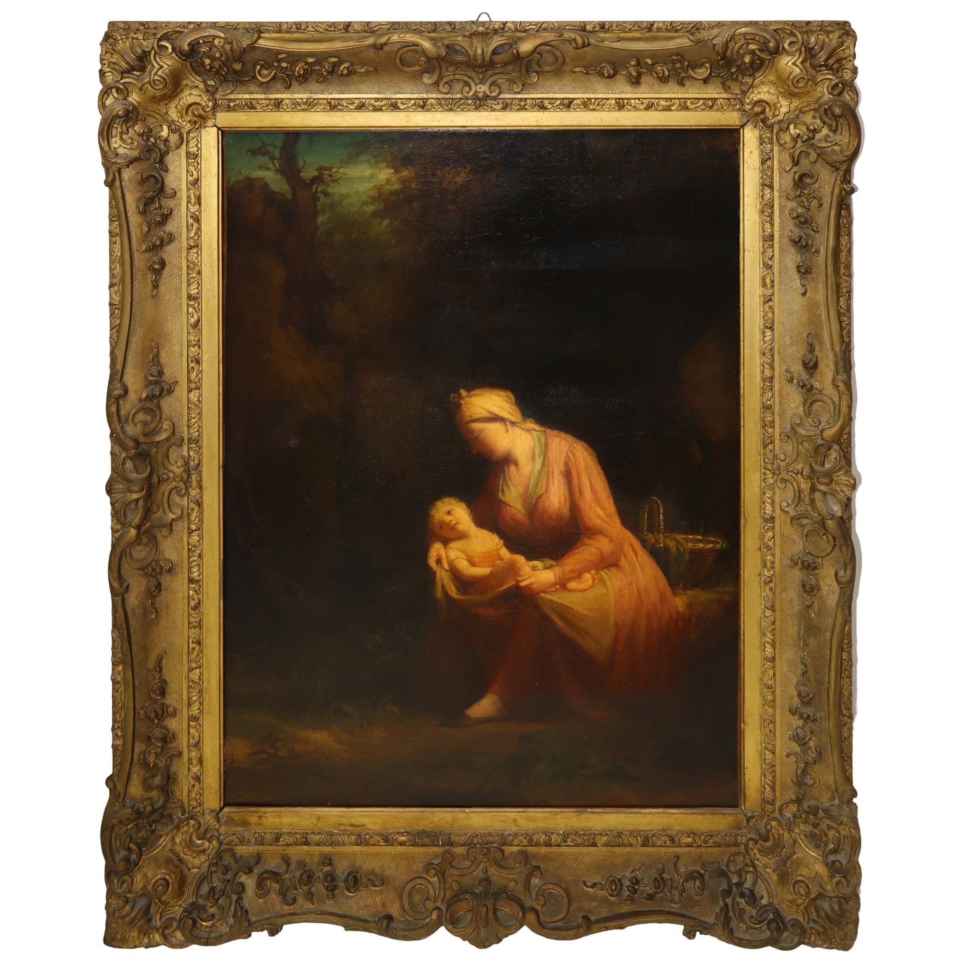 Maternità, primi 19° secolo H cm 72x54 - In cornice H cm 92x75 Olio su tela Opera rintelata. In bella cornice dorata