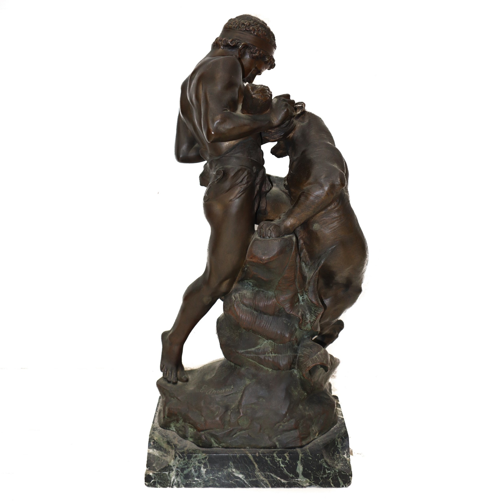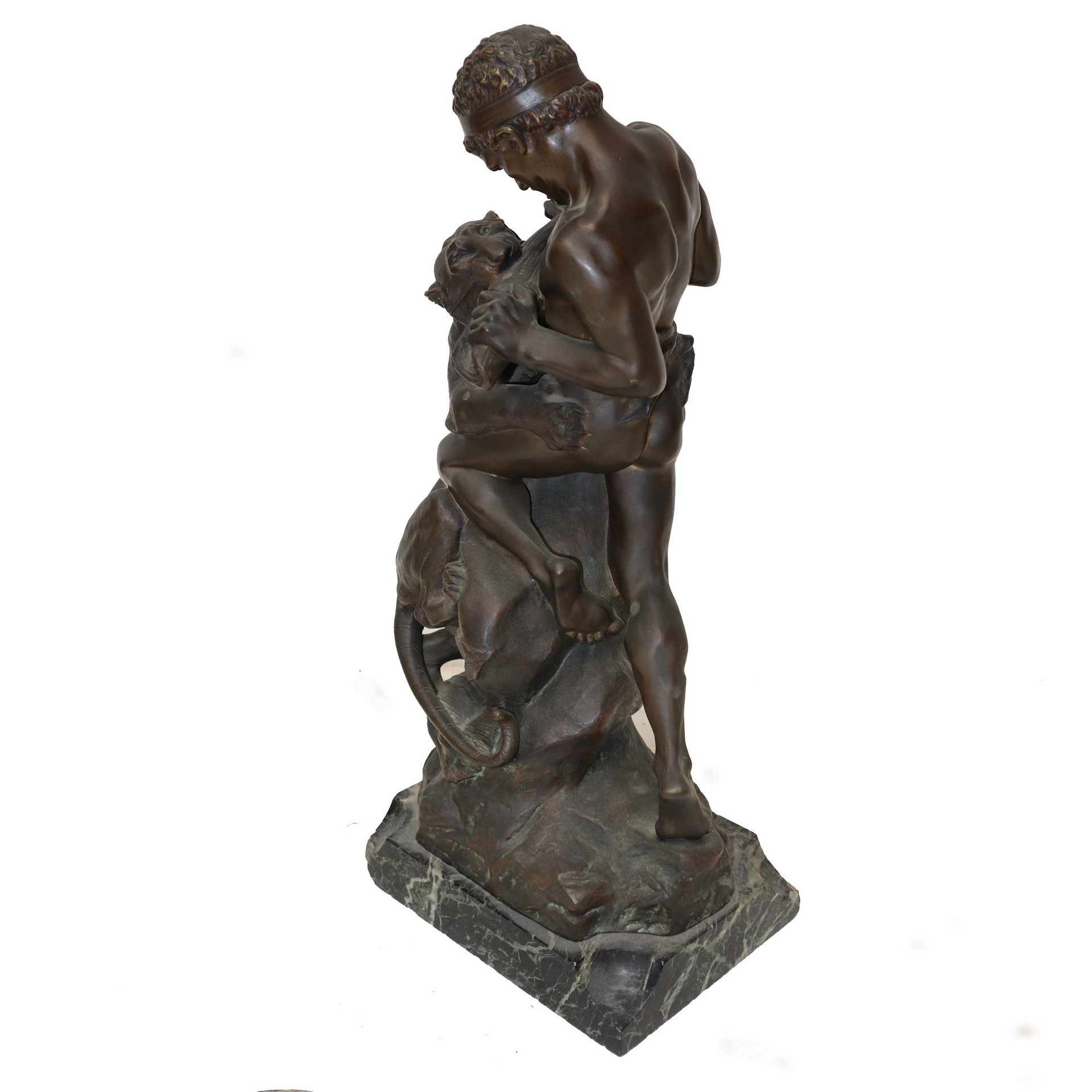Edouard Drouot (1859-1945) - Bronzo di ragazzo con tigre (Lotta per la vita), 1910 H cm 55 - base cm 24x17