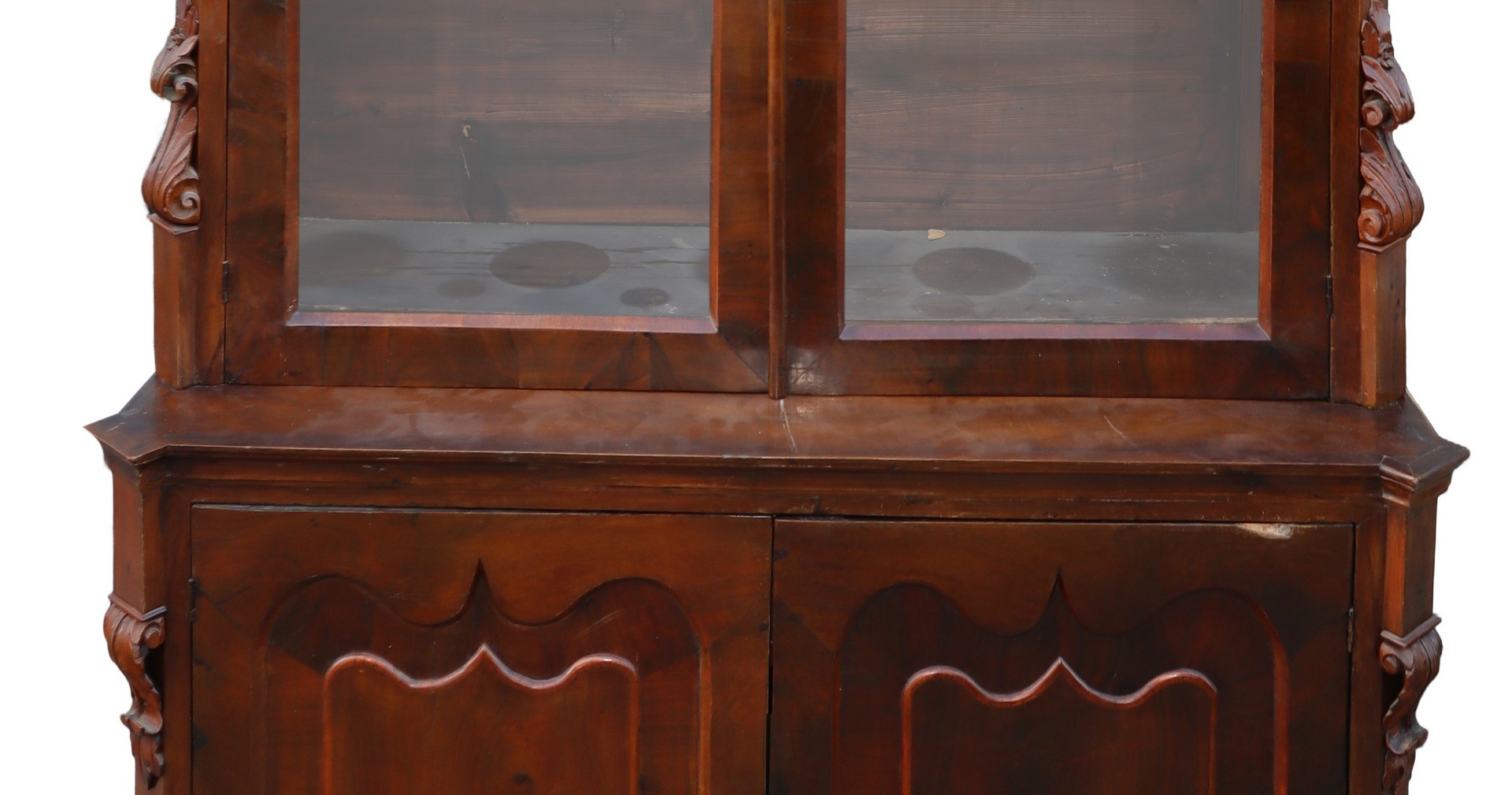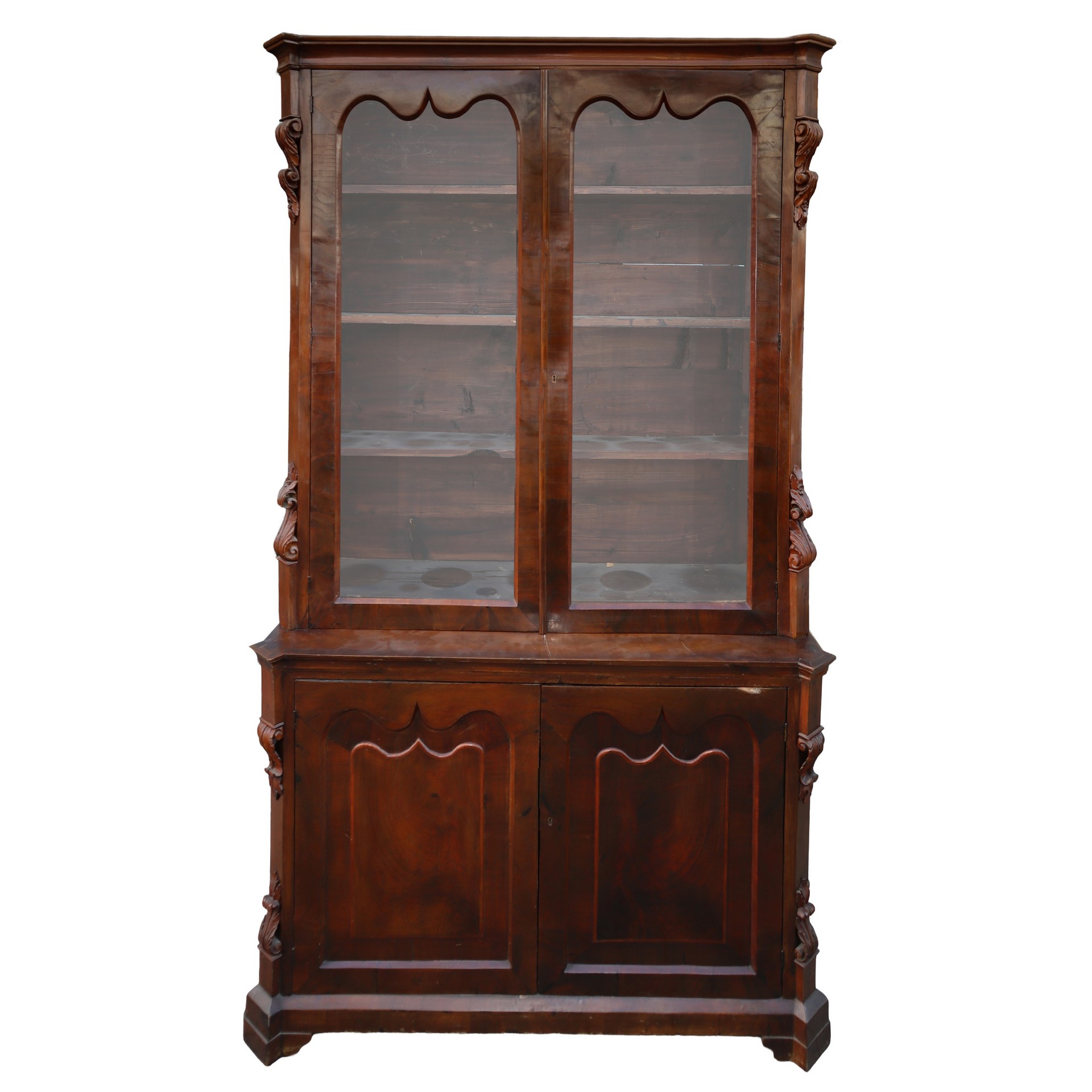 Vetrina credenza in legno di mogano doppio corpo, metà 19° secolo