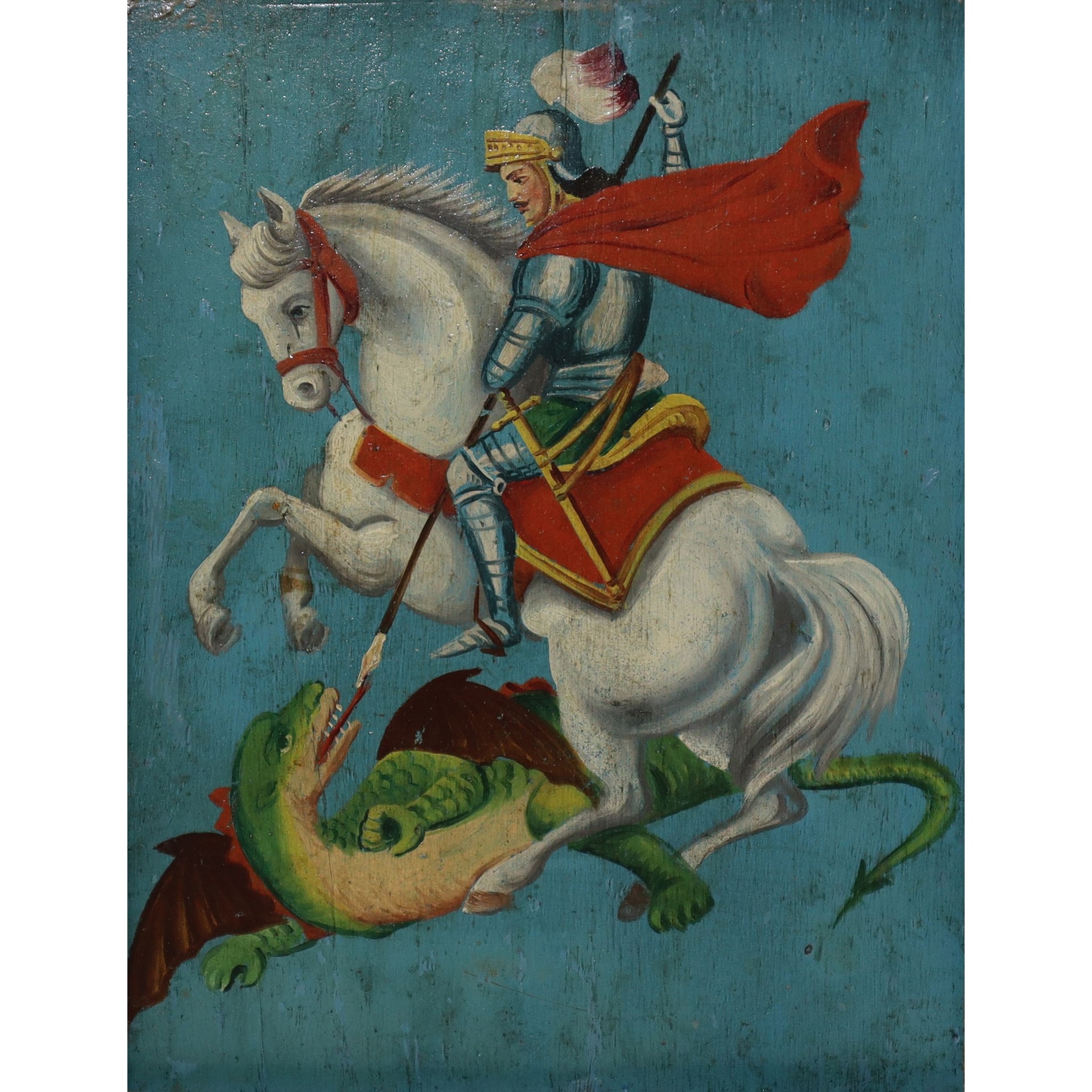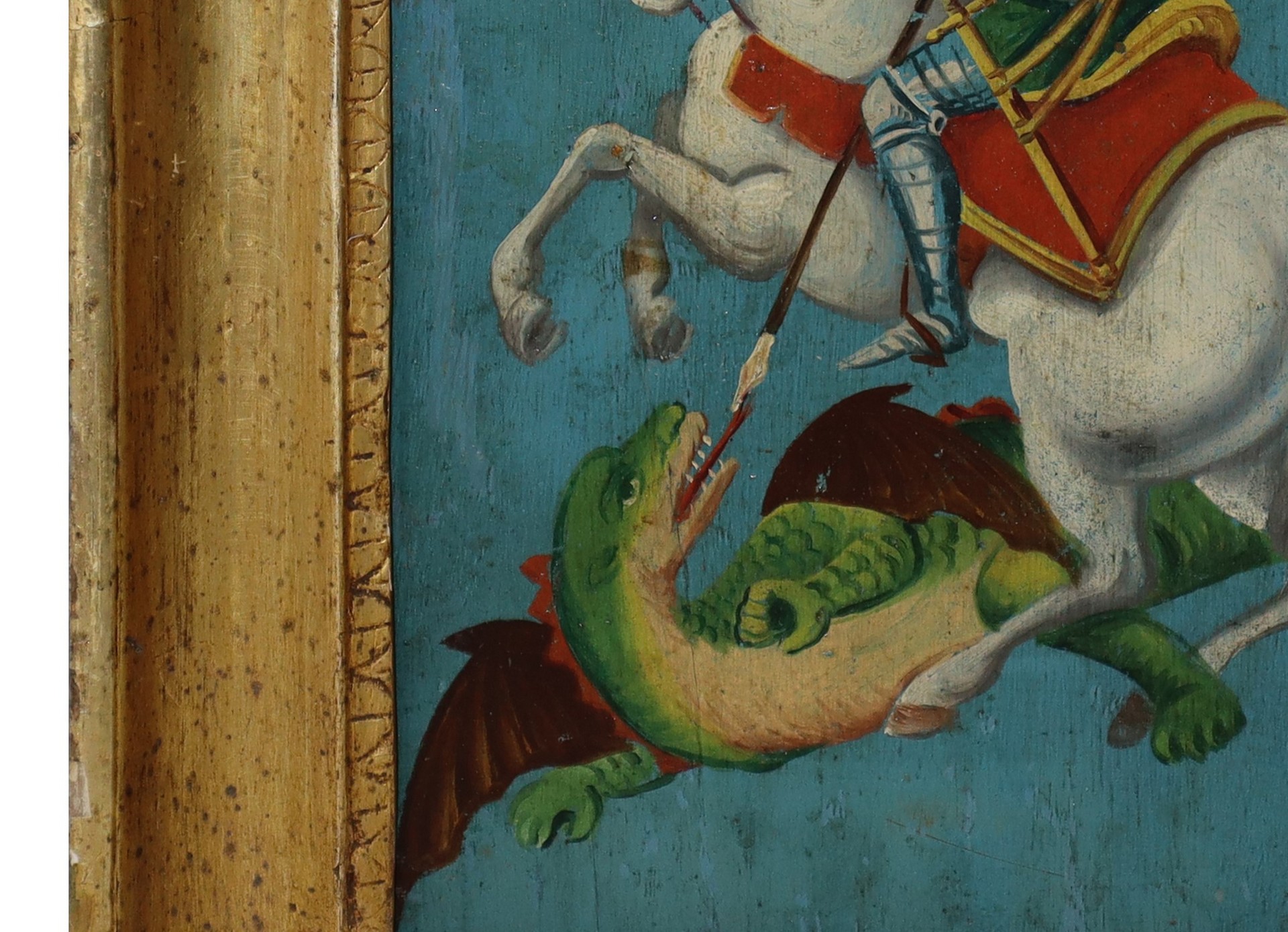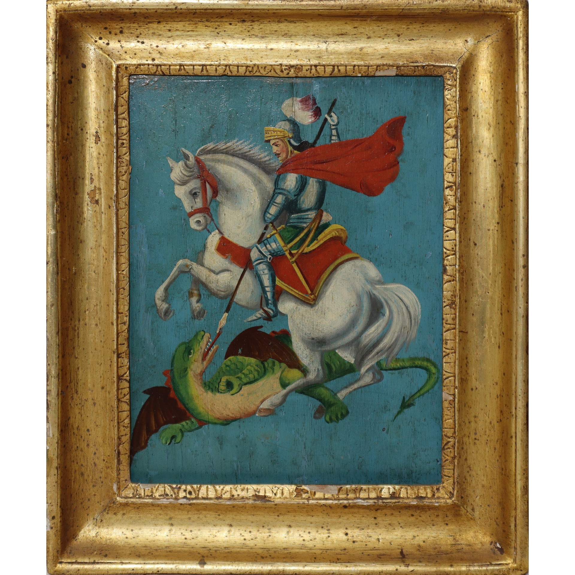 Olio su tavola di San Giorgio e il drago H cm 33x28 - in cornice H cm 40x33 Olio su tavola
