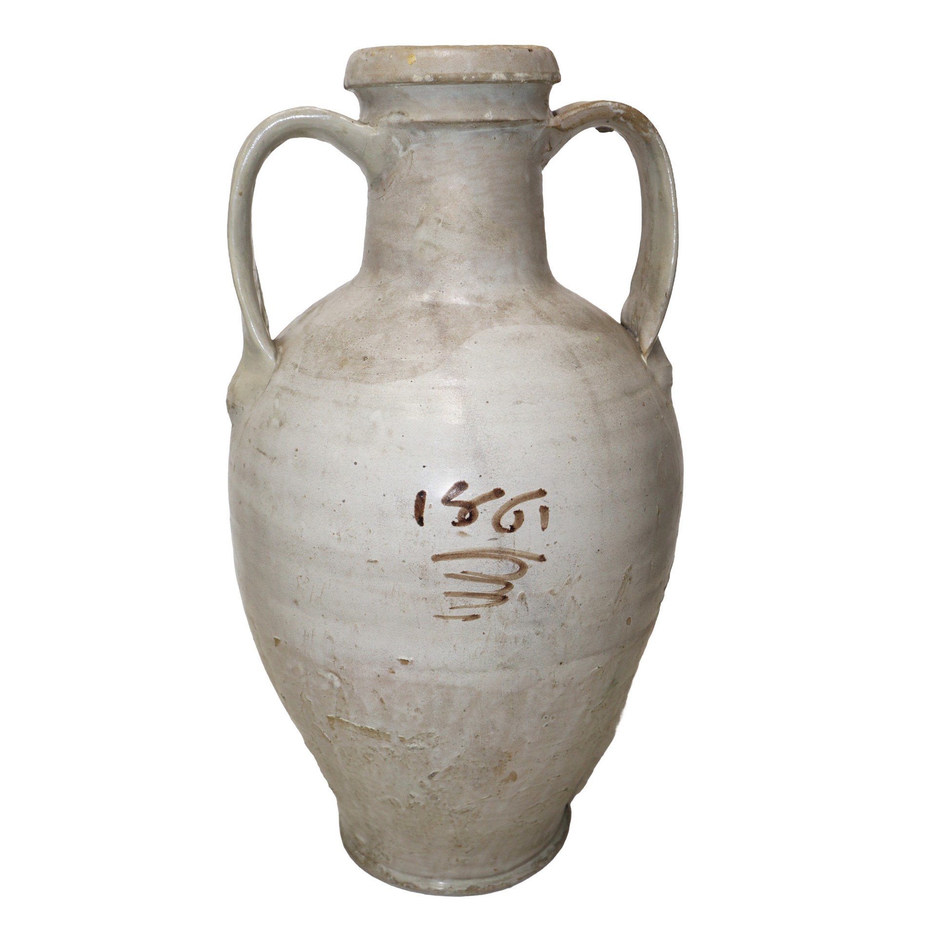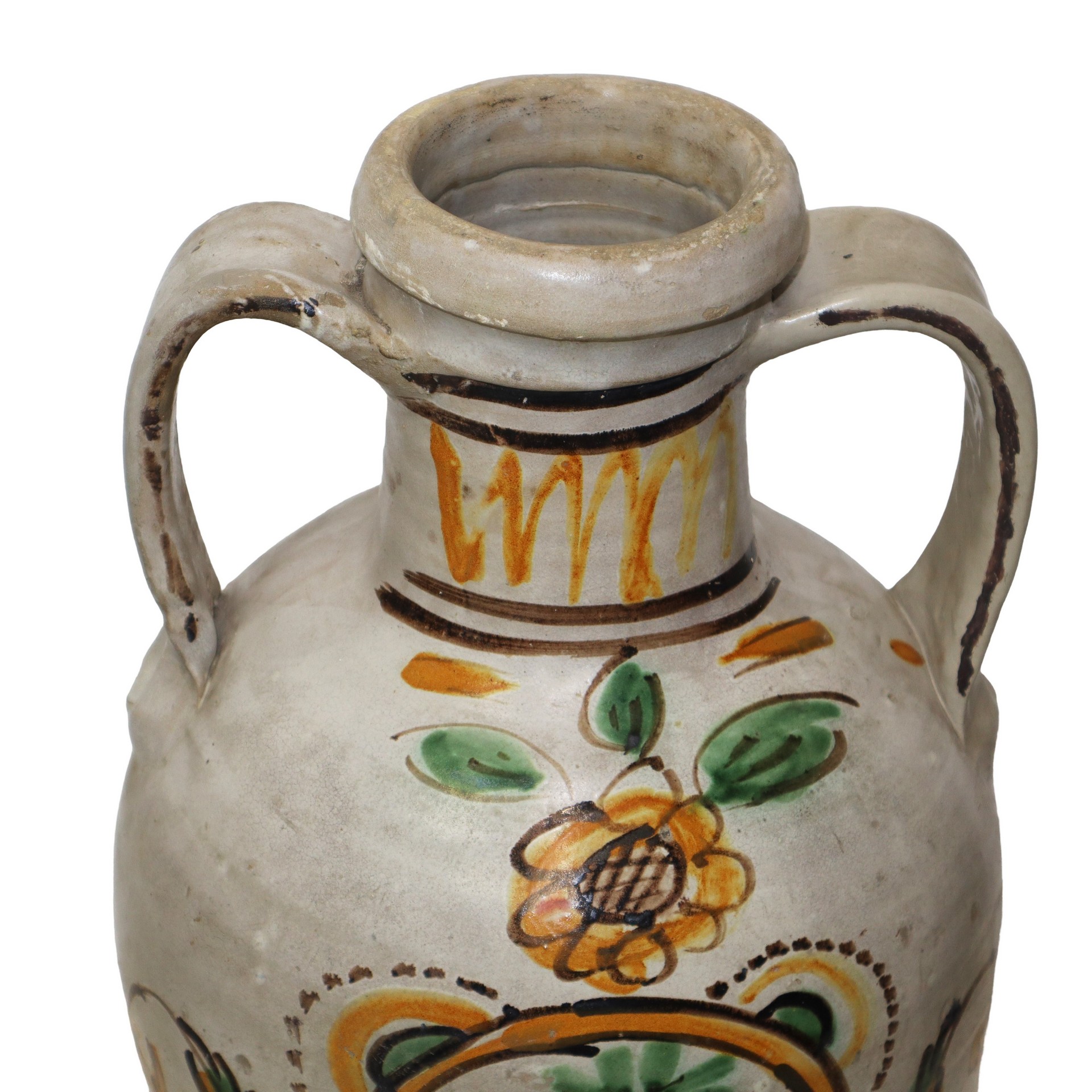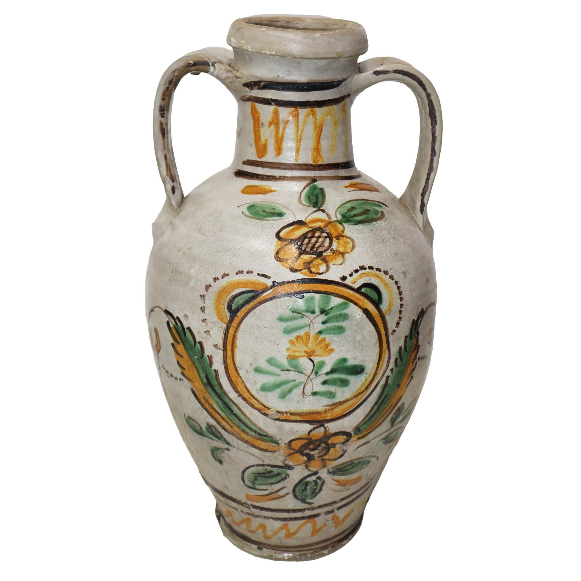 Quartara in maiolica di Caltagirone, 1861 Dipinta sul fronte, manico restauratoDipinta sul fronte, manico restaurato