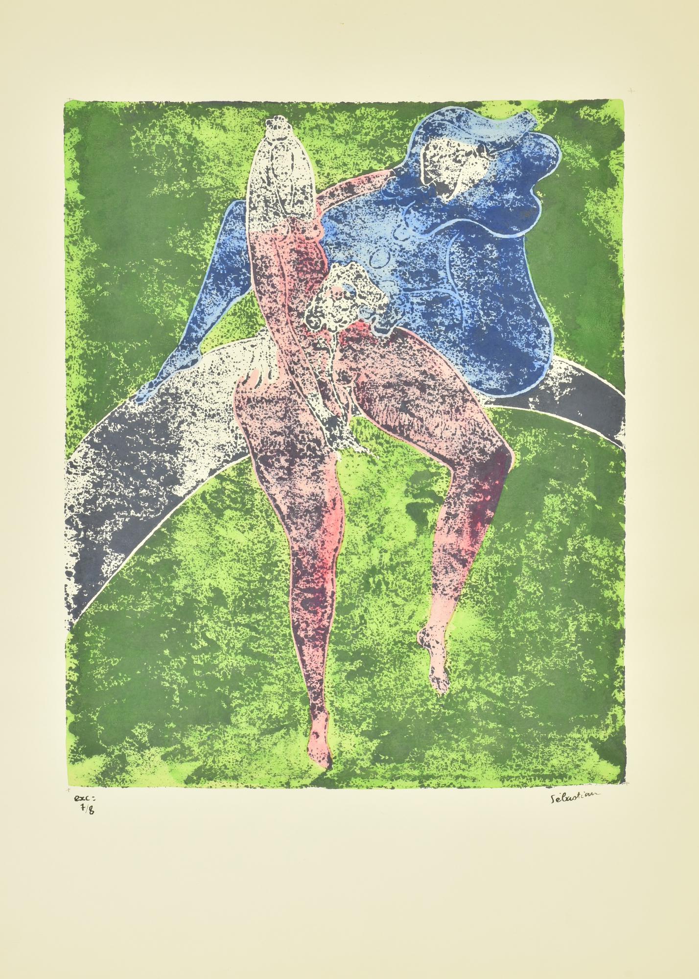 Sebastian LA DAME, LA FLEUR ET PIERROT serigrafia materica su carta ritoccata...