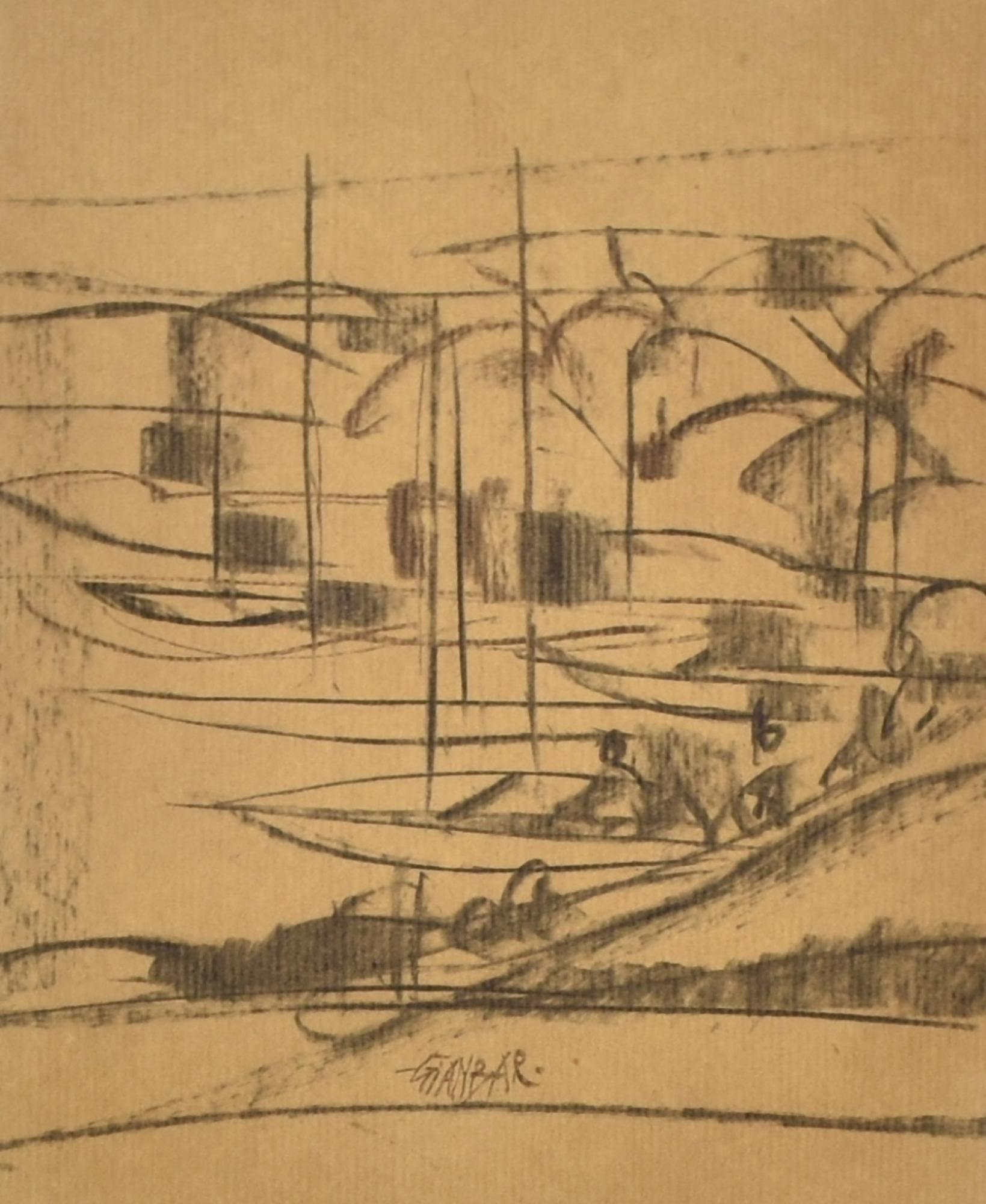 GIANBAR (Gianni Baretta) BARCHE A MALAGA carboncino su carta applicata su...