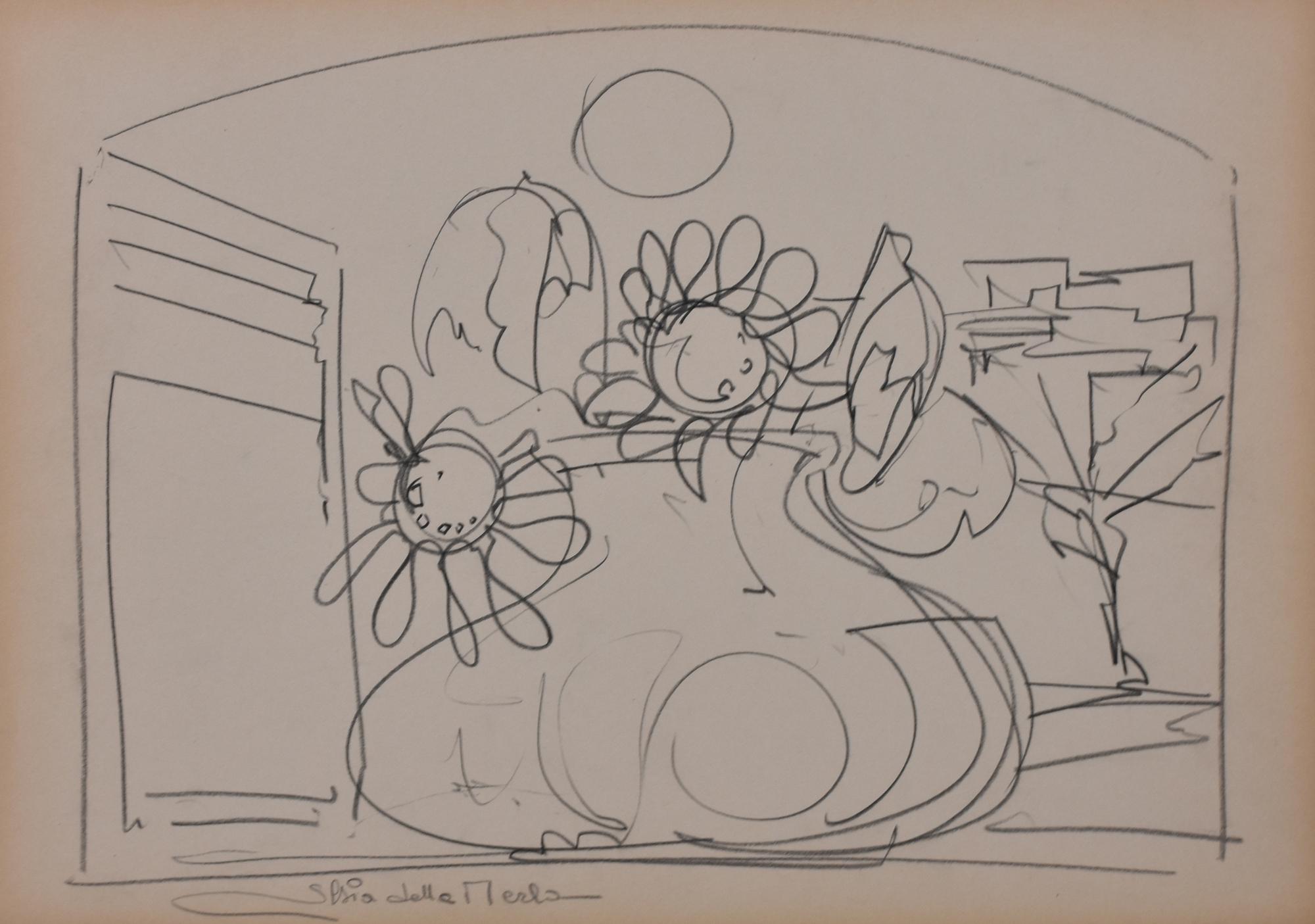 Gianni Sesia della Merla GIRASOLI matita su carta, cm 34,5x50 firma sul...