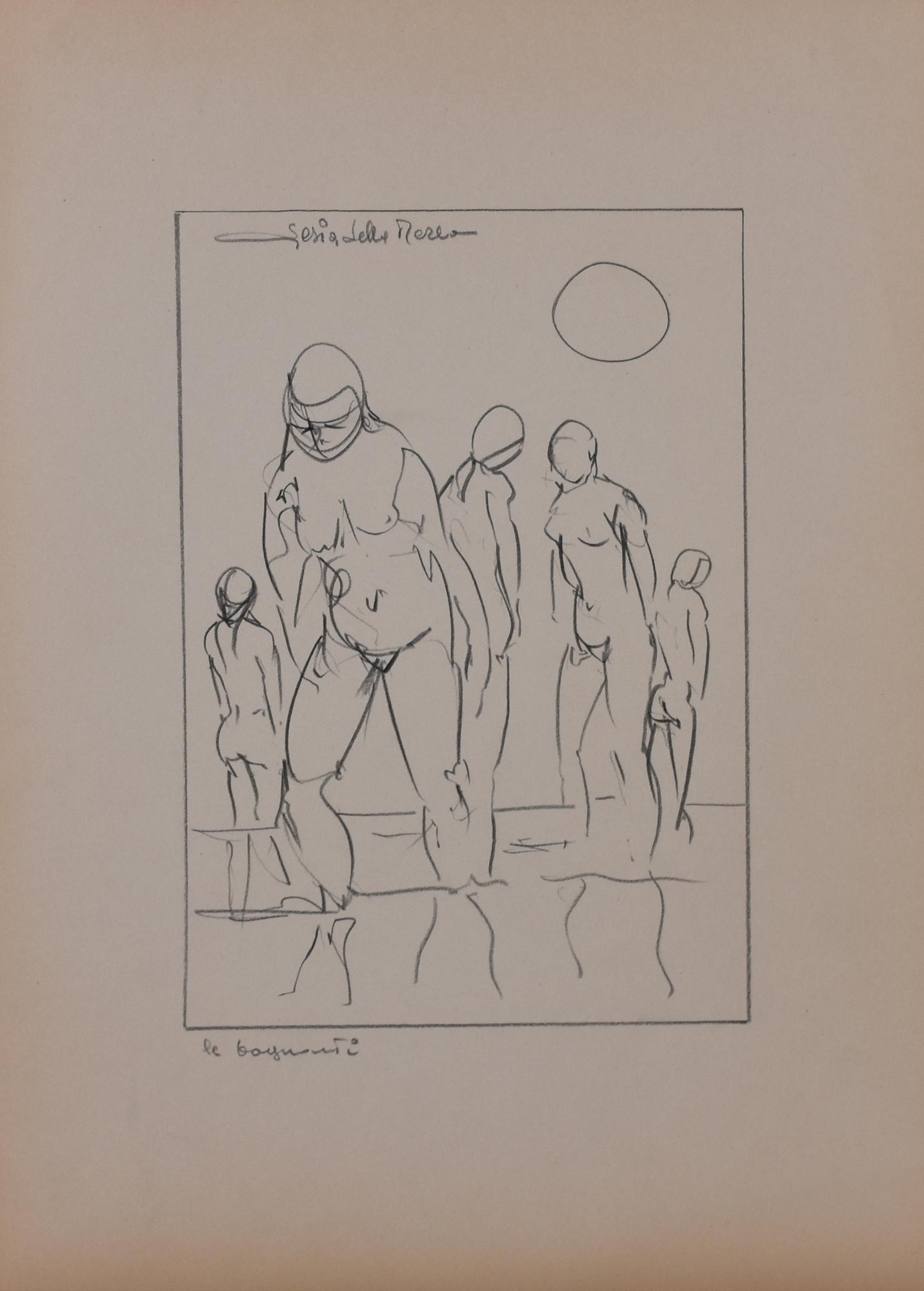 Gianni Sesia della Merla LE BAGNANTI matita su carta, cm 50x34,5 firma e...