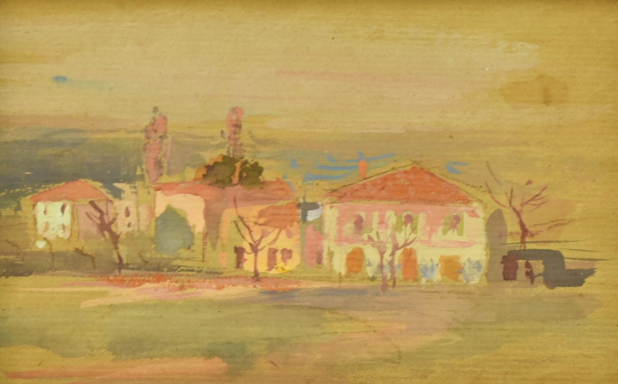Ignoto VEDUTA DI CAMPAGNA acquarello su carta, cm 12x20 firma Lievi difetti