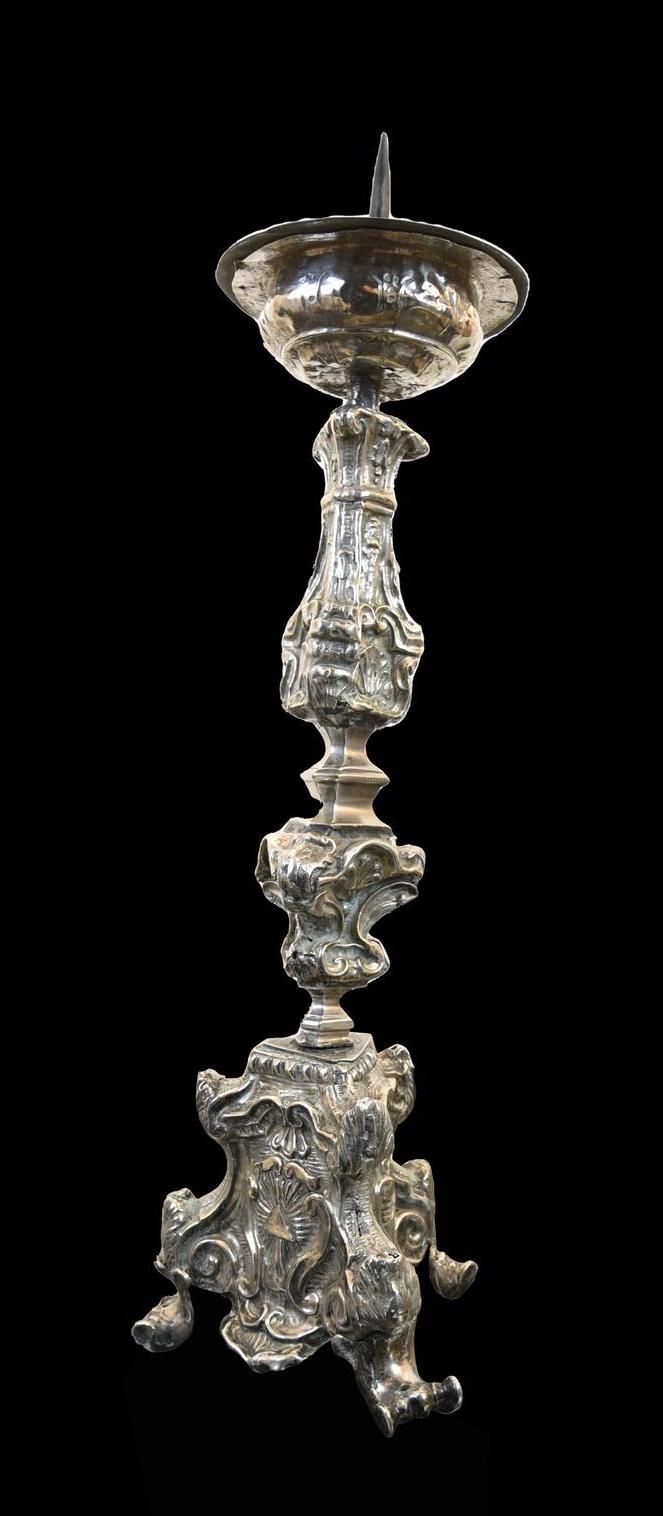 TORCIERE DEL XVIII SECOLO in lamina d'argento sbalzato, h cm 51, peso...