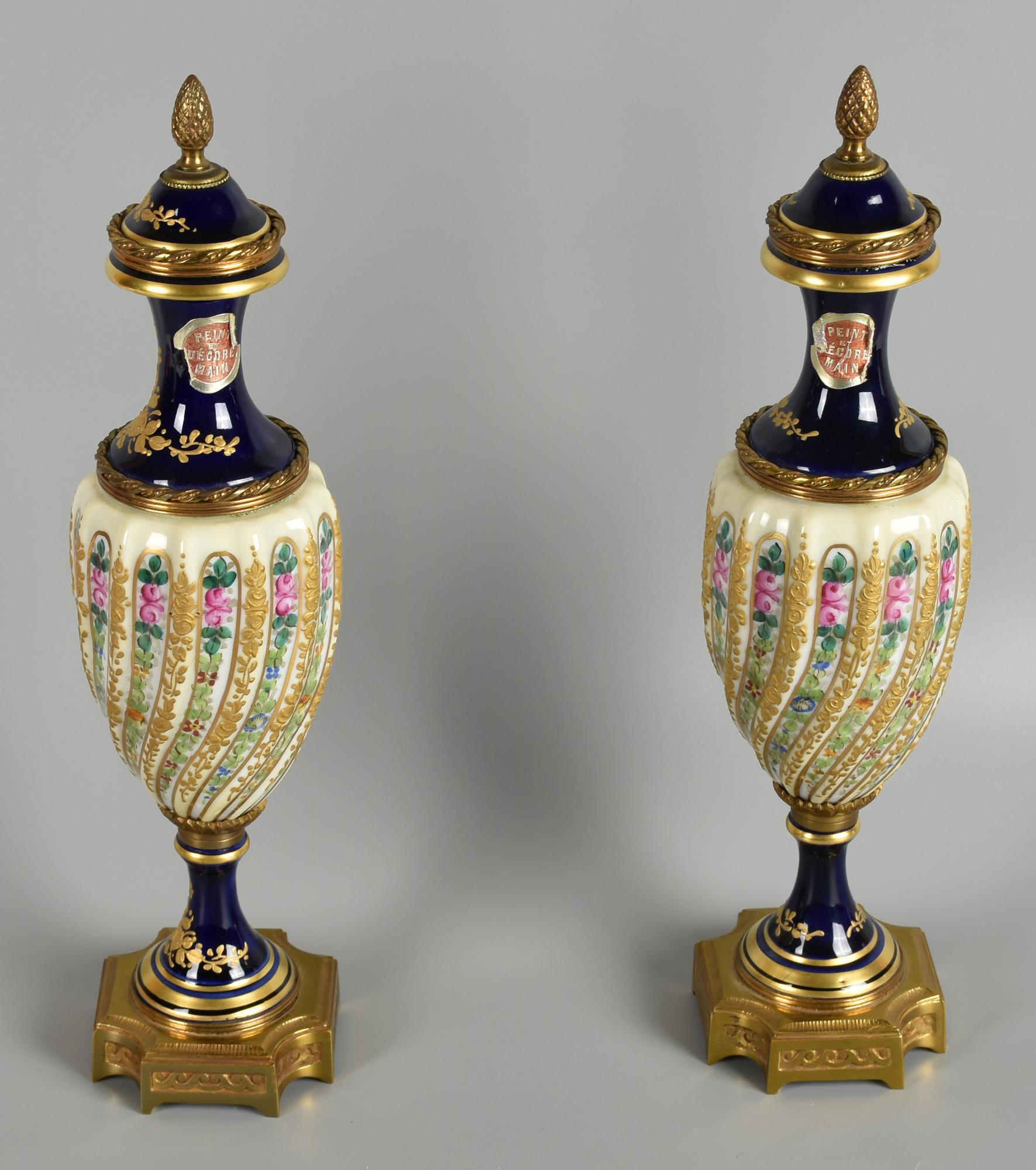 Lot 92 | COPPIA DI VASI AD URNA IN PORCELLANA DI SEVRESblu cobalto decorata a mano con...