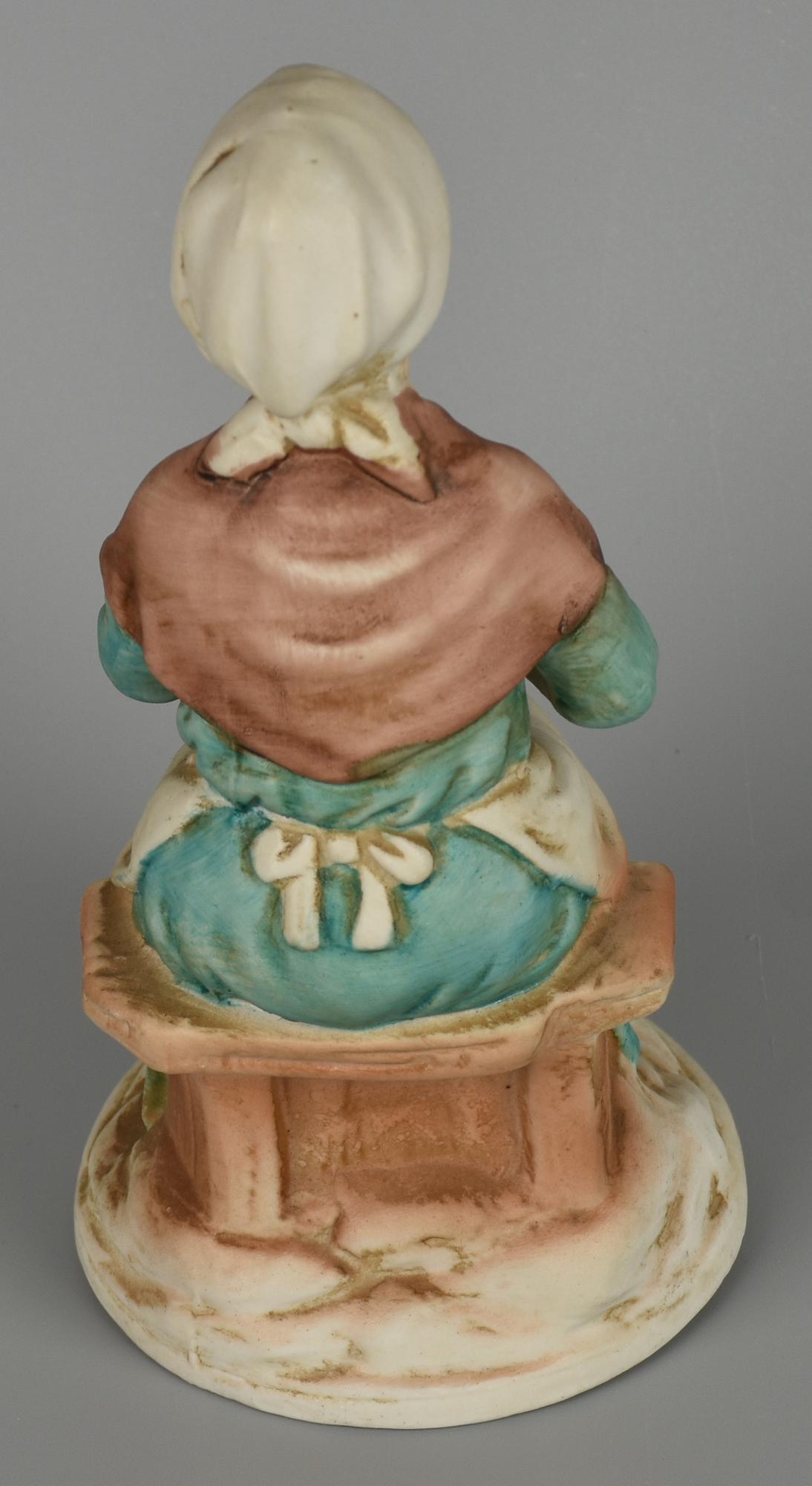 ANZIANA SEDUTA scultura in porcellana di Capodimonte h 17 cm, base dm 7,5 cm