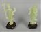 LOTTO DI STATUETTE IN GIADA poggianti su base in legno, raffiguranti...