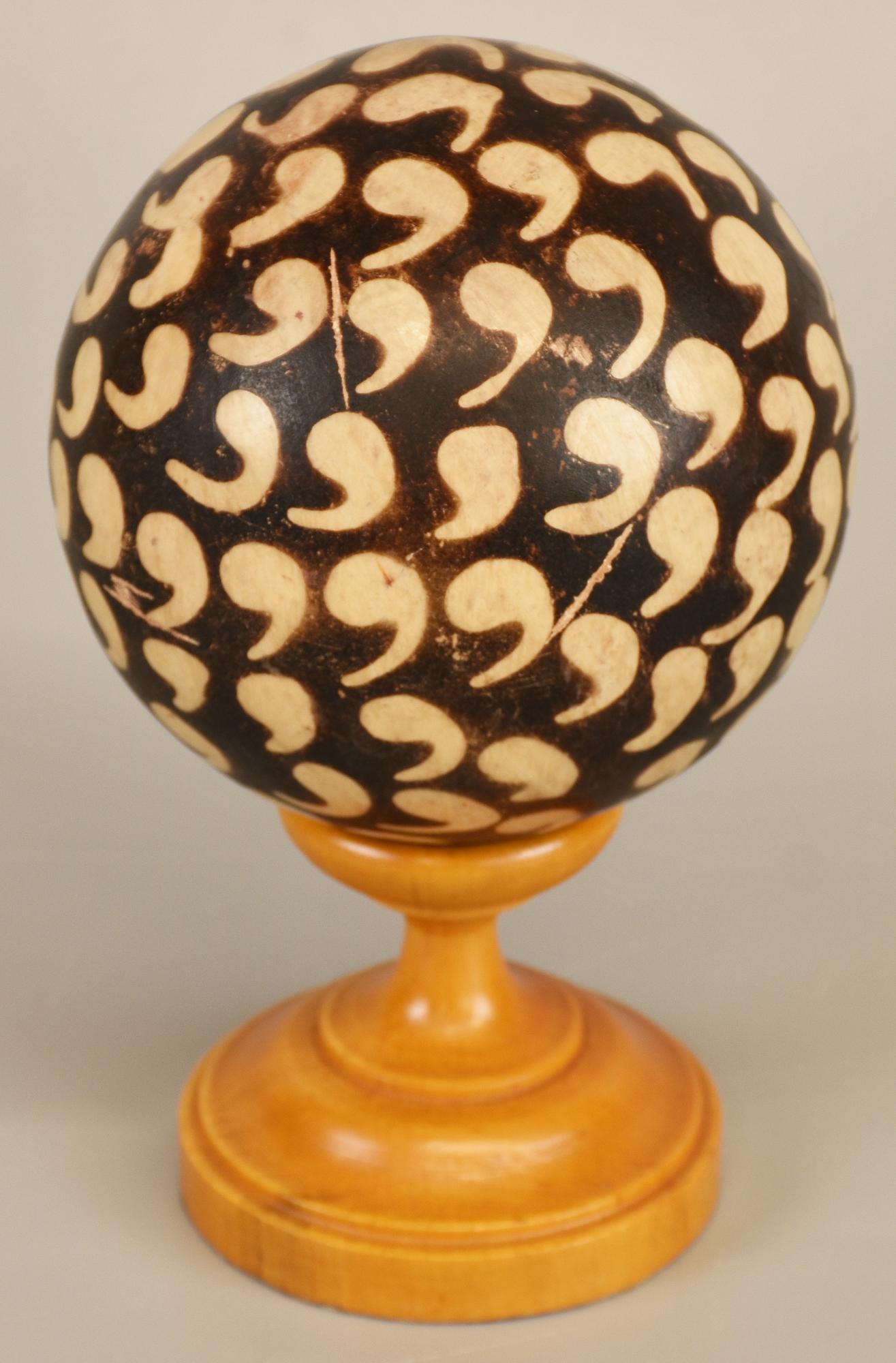 SFERA IN LEGNO dipinto e decorato con base in legno diam cm 11 h tot cm 18...