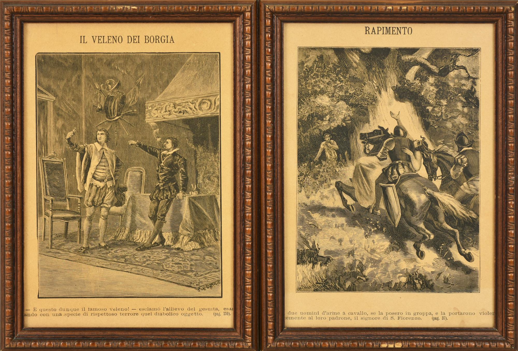 LOTTO DI 2 STAMPE da libro antico, cm 25x16 ciascuna - IL VELENO DEI BORGIA -...