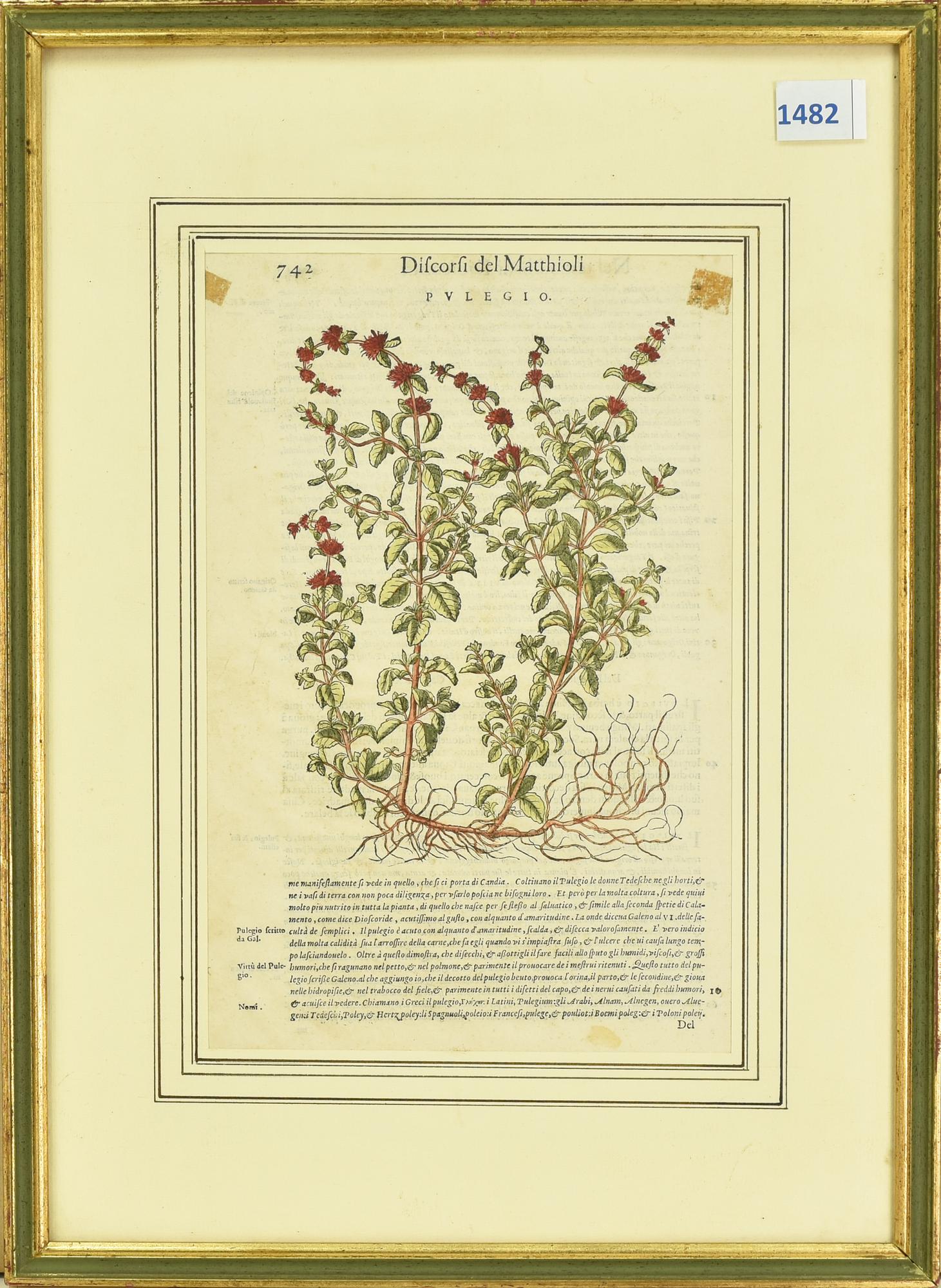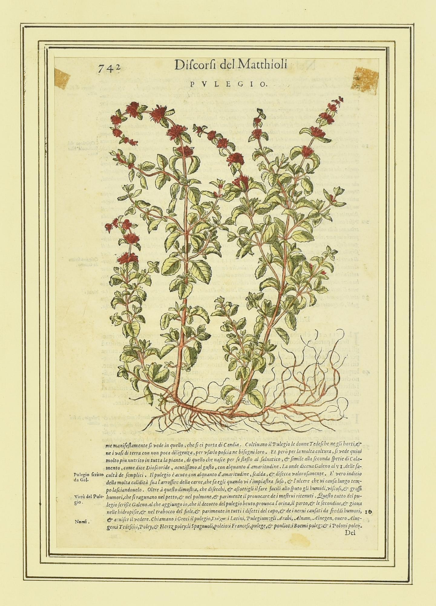 Pietro Andrea Mattioli PULEGIO xilografia acquarellata, cm 50x35