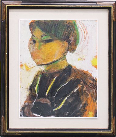 GIOVANNI FRANGI, "Alessandra", 1986, tecnica mista su cartoncino intelato, dim 55x44 cm. Opera con autentica su foto dell'artista. Al fronte: firma in alto a destra. Opera con cornice.
