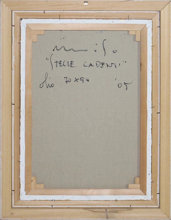 GIORGIO MOISO, "Stelle cadenti", 2005, Olio su tela, Dim. 70x50, Al fronte: firmato in basso a sinistra, Al verso: titolo, data e firma, Opera con cornice.