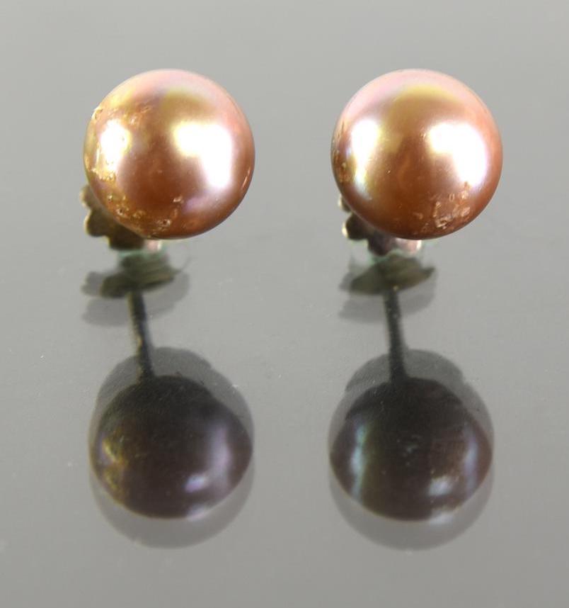 orecchini a vite con perle imitazione color rosato di mm 10,8 circa ciascuna