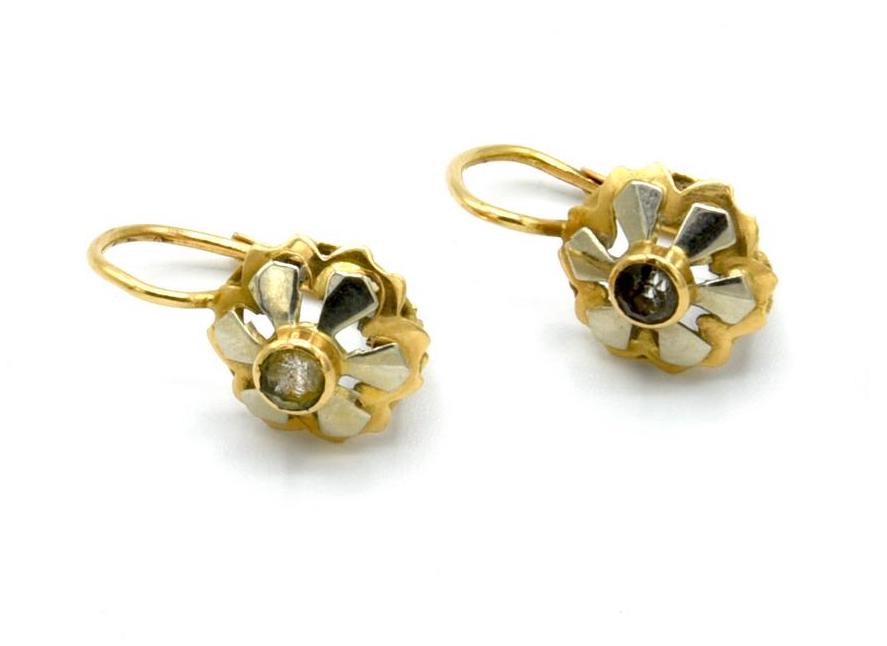 COPPIA DI ORECCHINI A MONACHELLA IN ORO GIALLO CON PICCOLA PIETRA CENTRALE