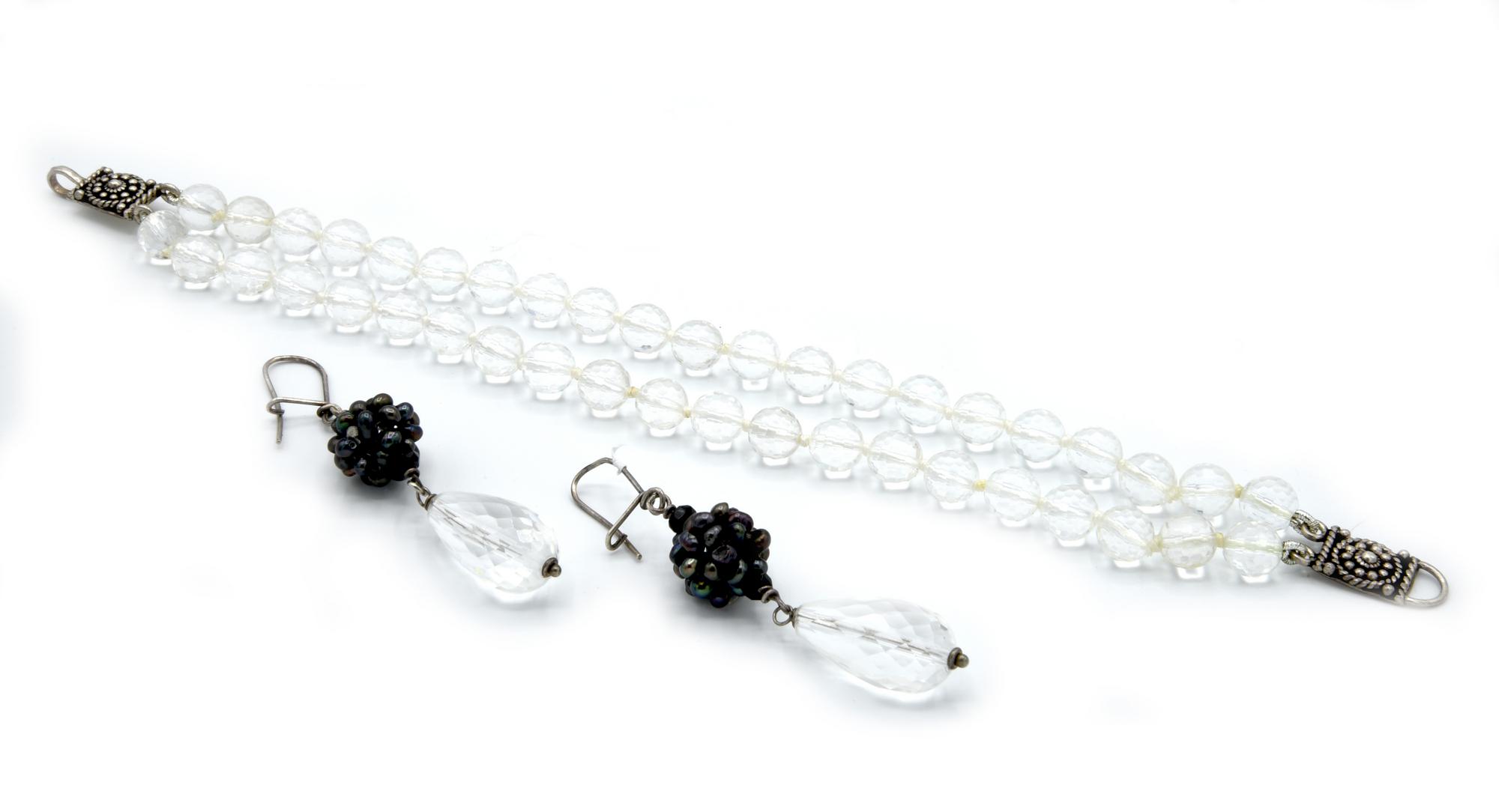 PARURE COMPOSTA DA COPPIA ORECCHINI PENDENTI E BRACCIALE TIPO CRISTALLO