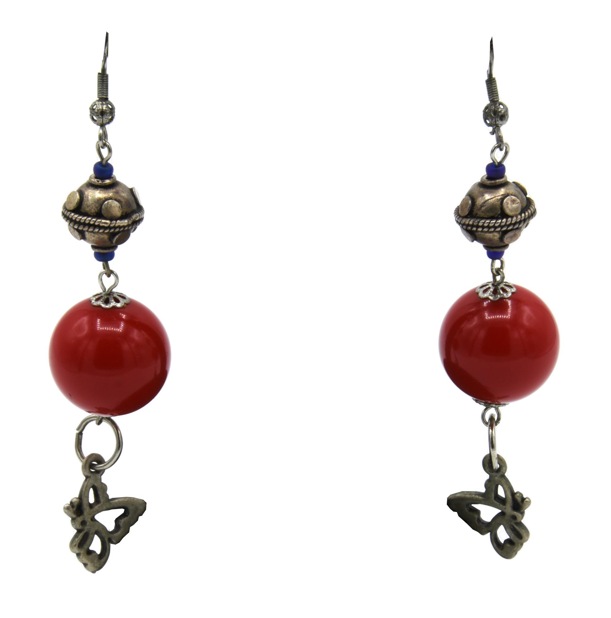 Lot 154 | COPPIA DI ORECCHINI CON SFERE ROSSE, METALLO ARGENTATO E PICCOLI PENDENTI A...