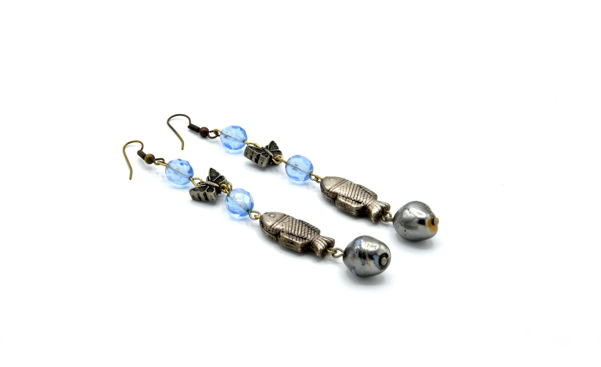 ORECCHINI PENDENTI CON PICCOLI PESCI lunghezza cm 9